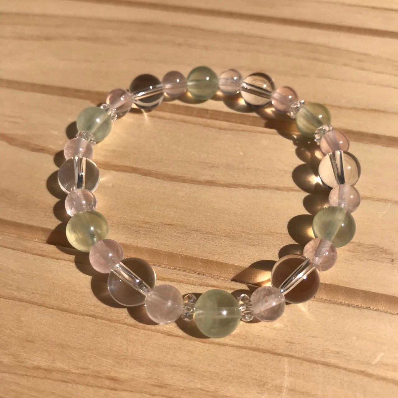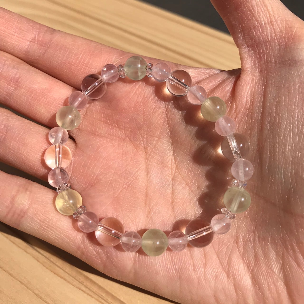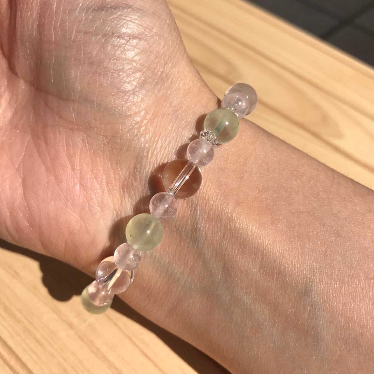 プレナイト&マダガスカルローズ、水晶ブレスレット