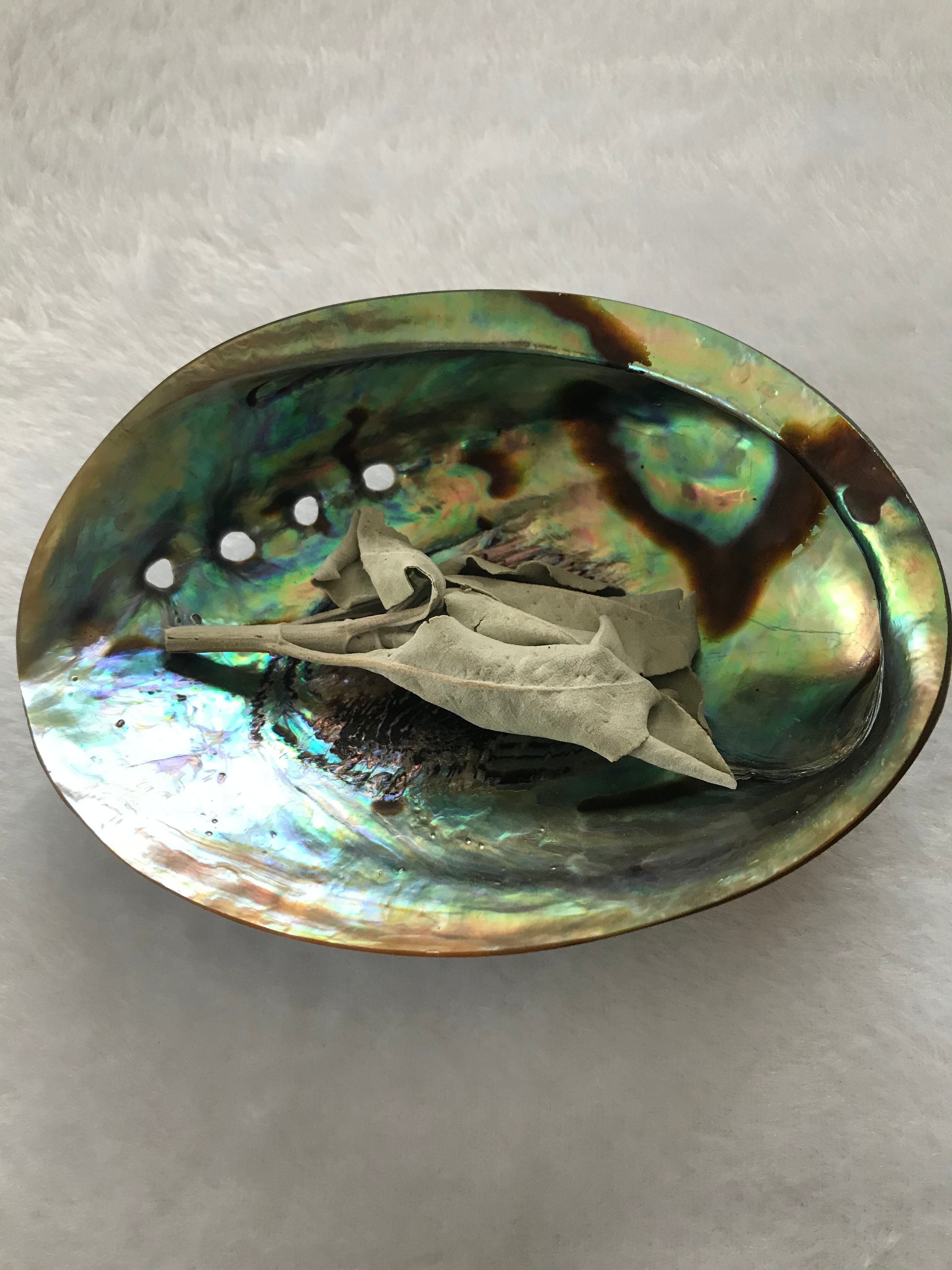 ネイティブアメリカンは このアバロンシェルと石や土、セージを使いそれを焚くことで出る煙りを用い、『水・地・火・風』の4大元素に見たて 、空間に地球のエネルギーを作り出し強力な浄化を行ったそうです。