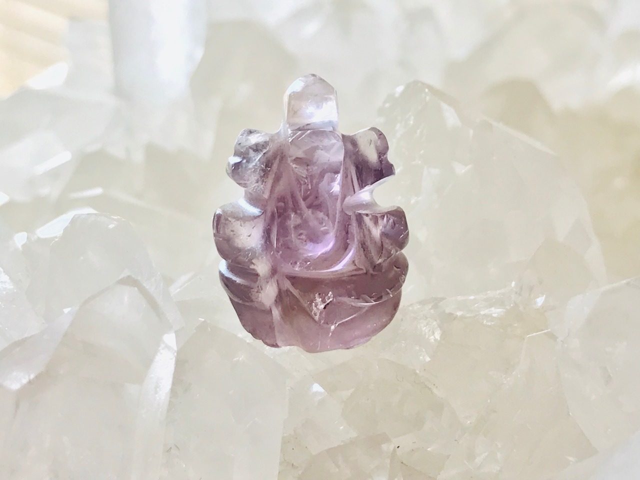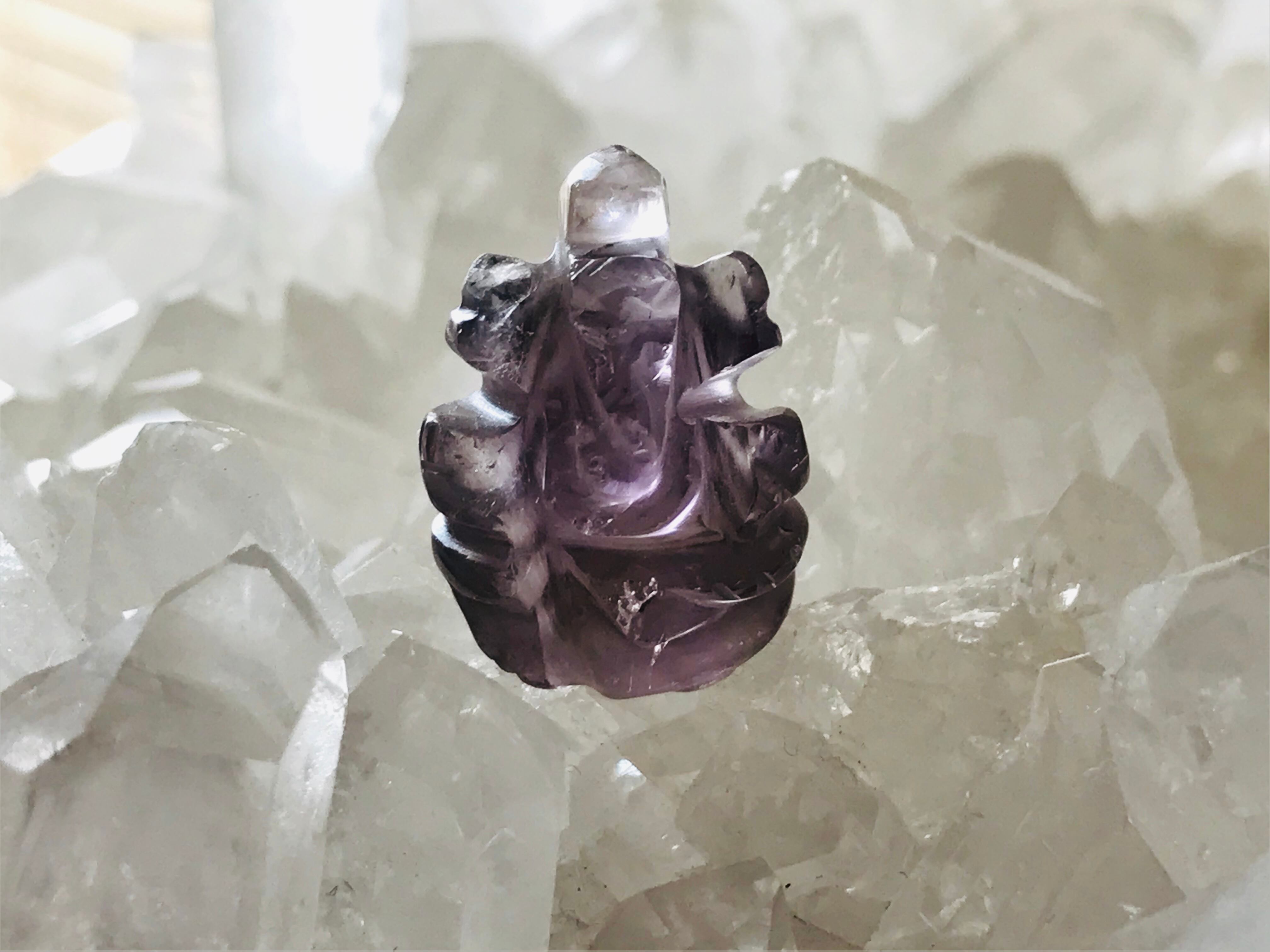 学問、商売の神さまガネーシャを施したヒマラヤアメシストです。
