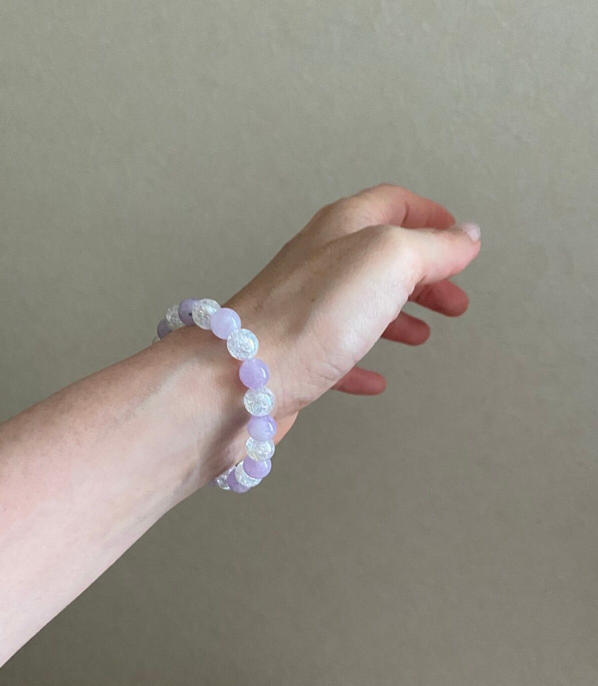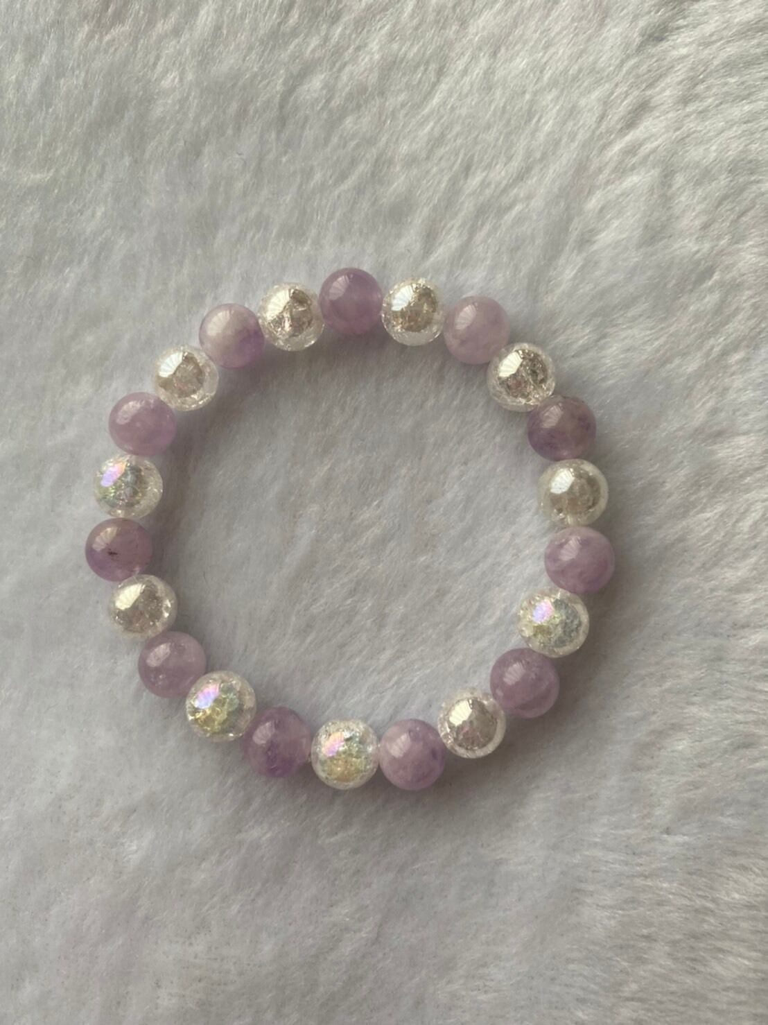 ③ラベンダーアメシスト 8ミリ、クラックオーラ8ミリブレスレット