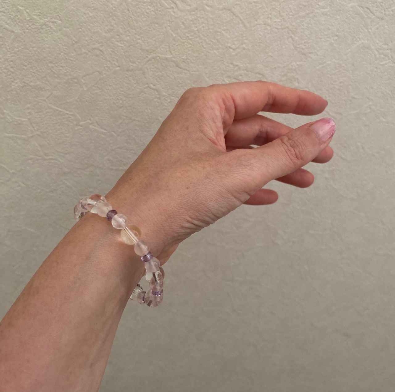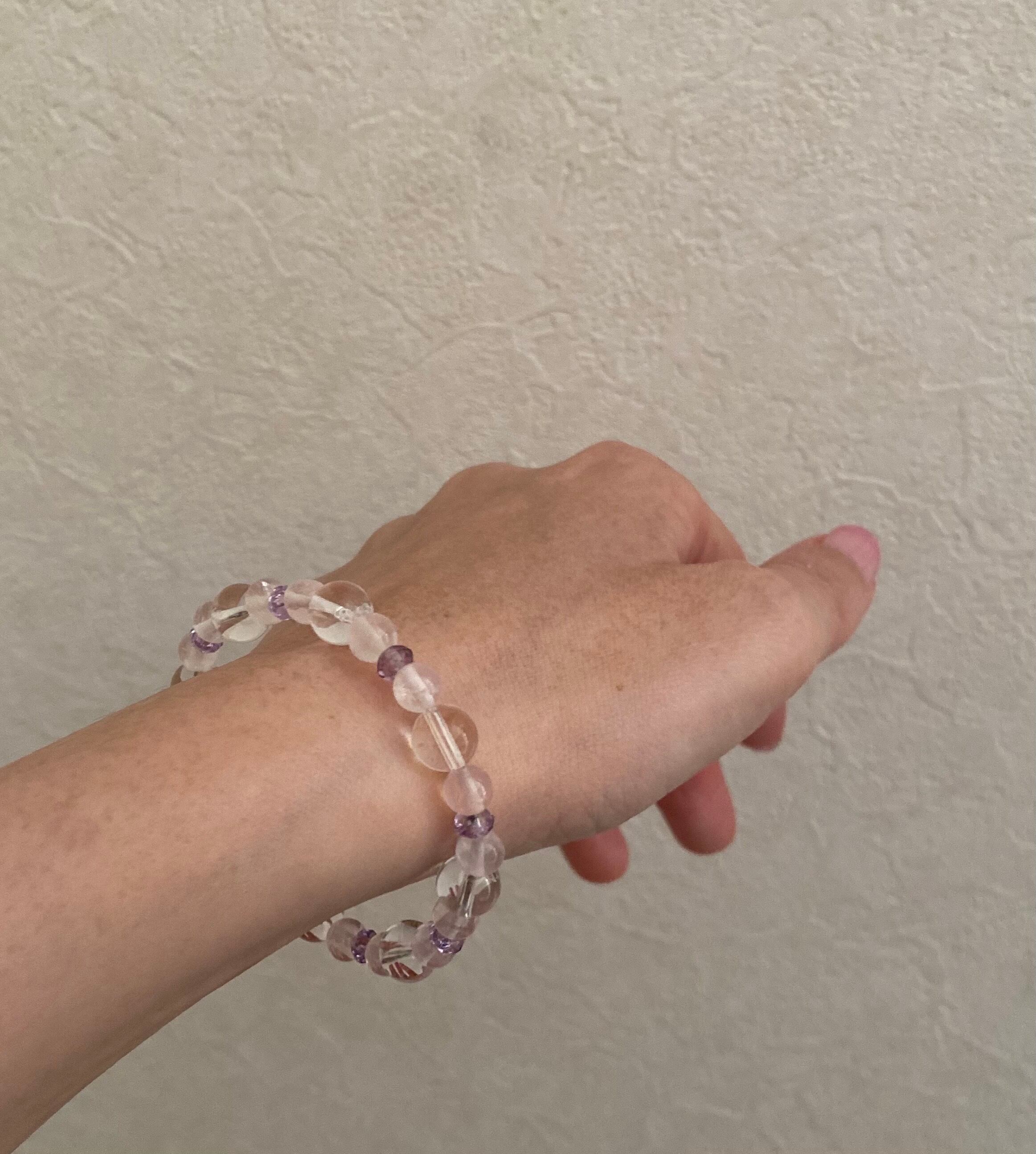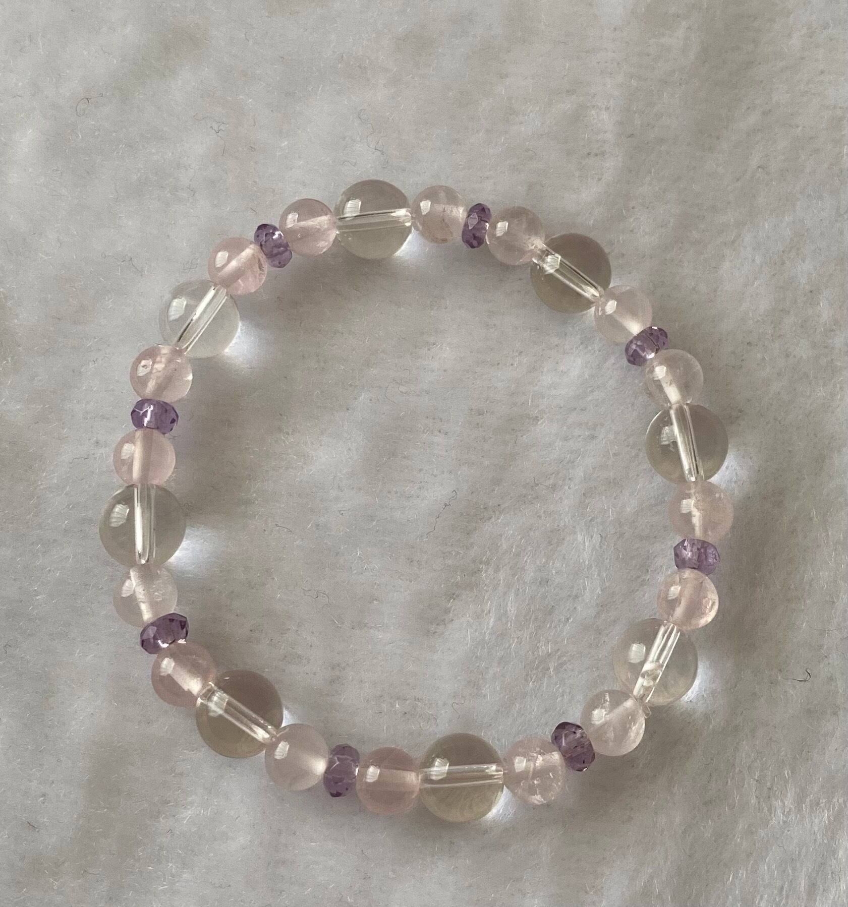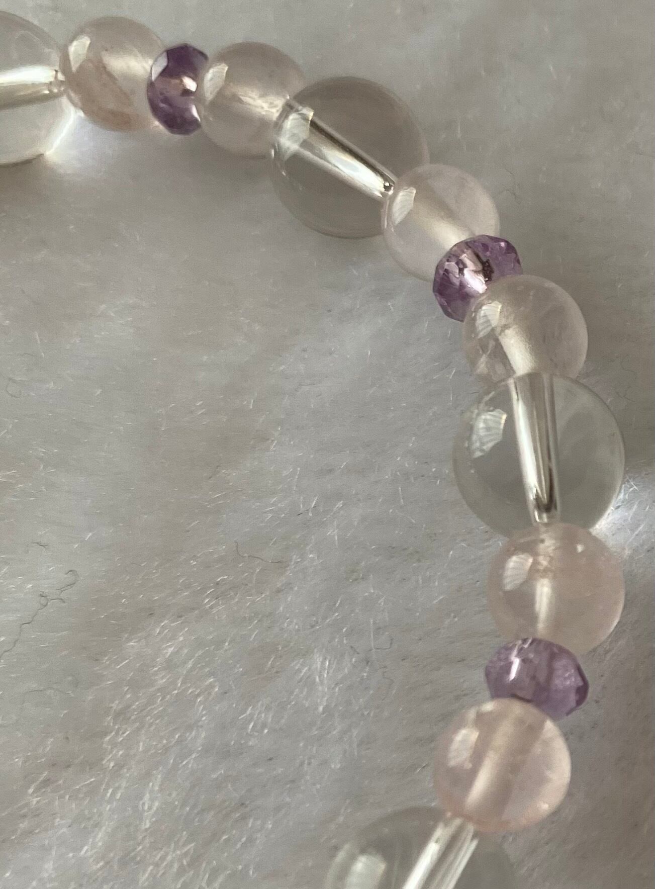 水晶8㎜ クリアローズクォーツ6㎜ ラベンダーアメシストボタンビーズ ブレスレット