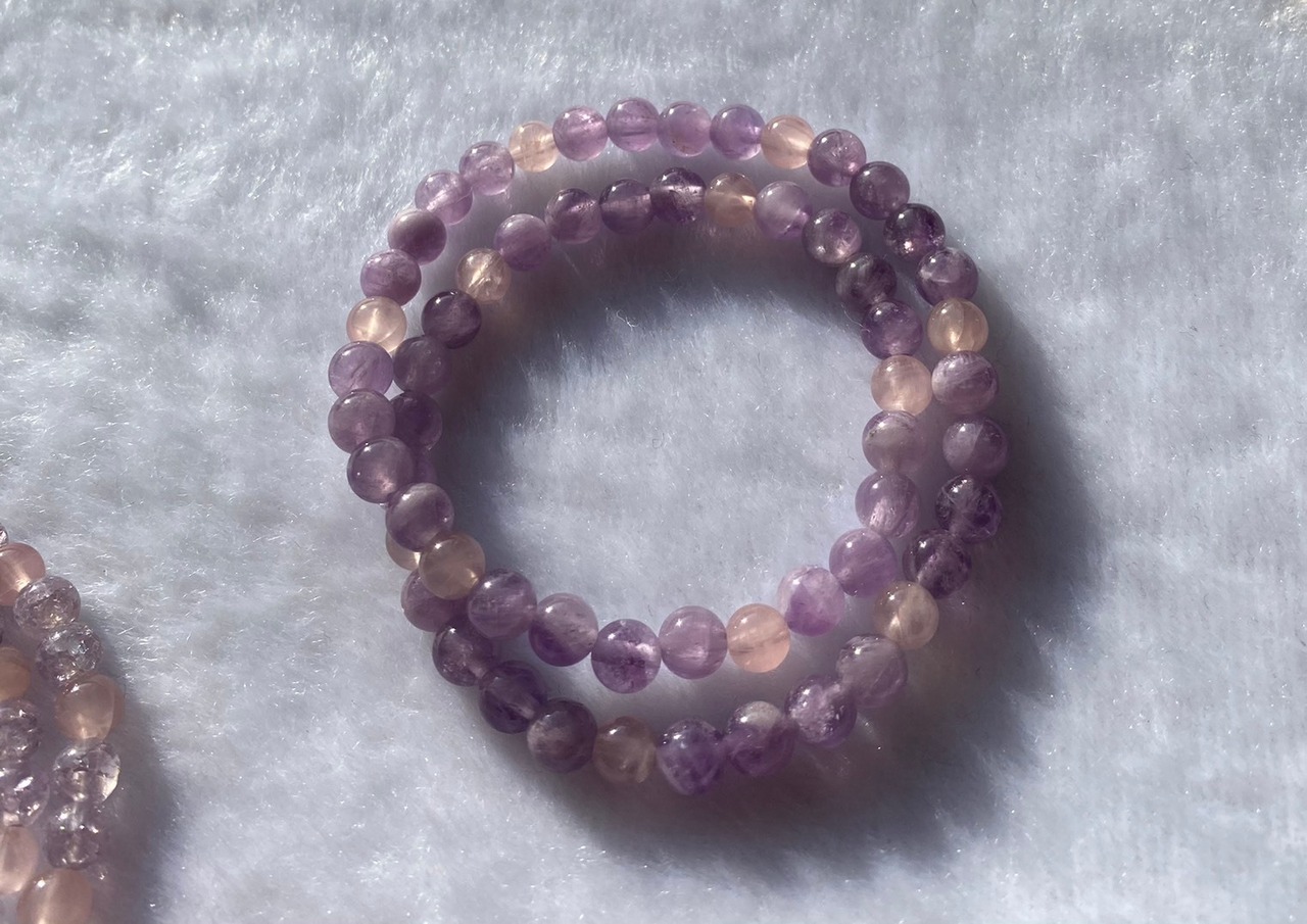 ラベンダーアメシスト、マダガスカルローズクォーツ6ミリ二連ブレスレット