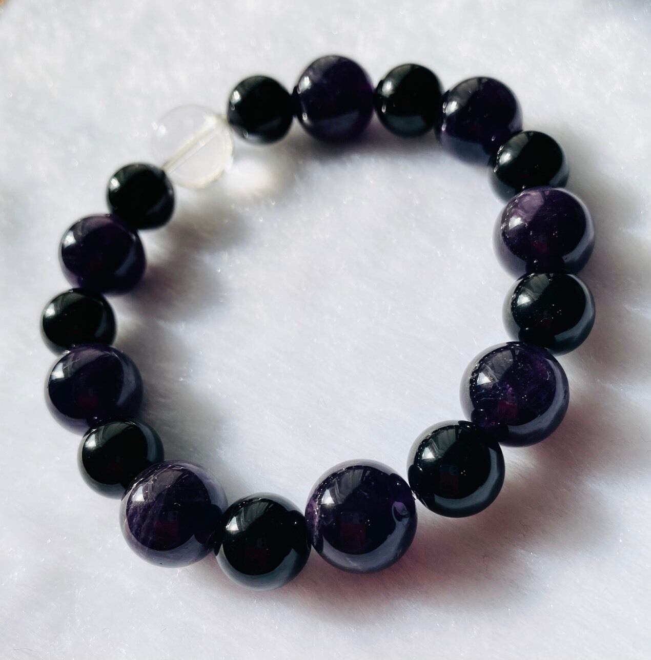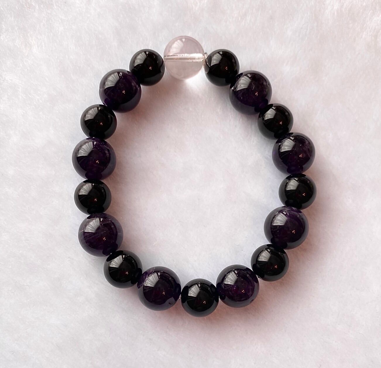 アメシスト12ミリ黒水晶10ミリコンビ+水晶12ミリブレスレット