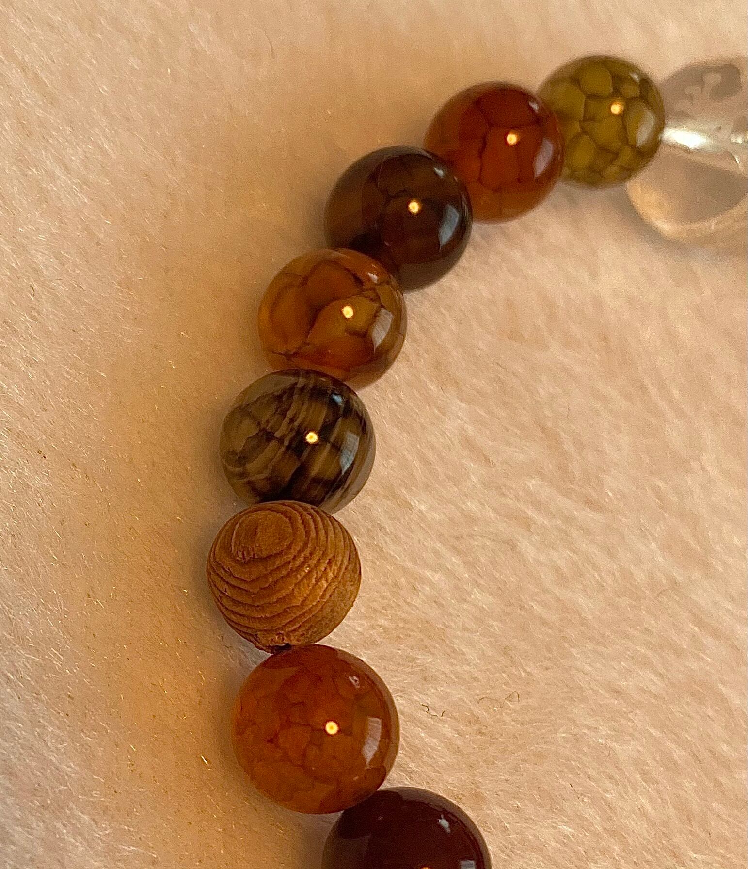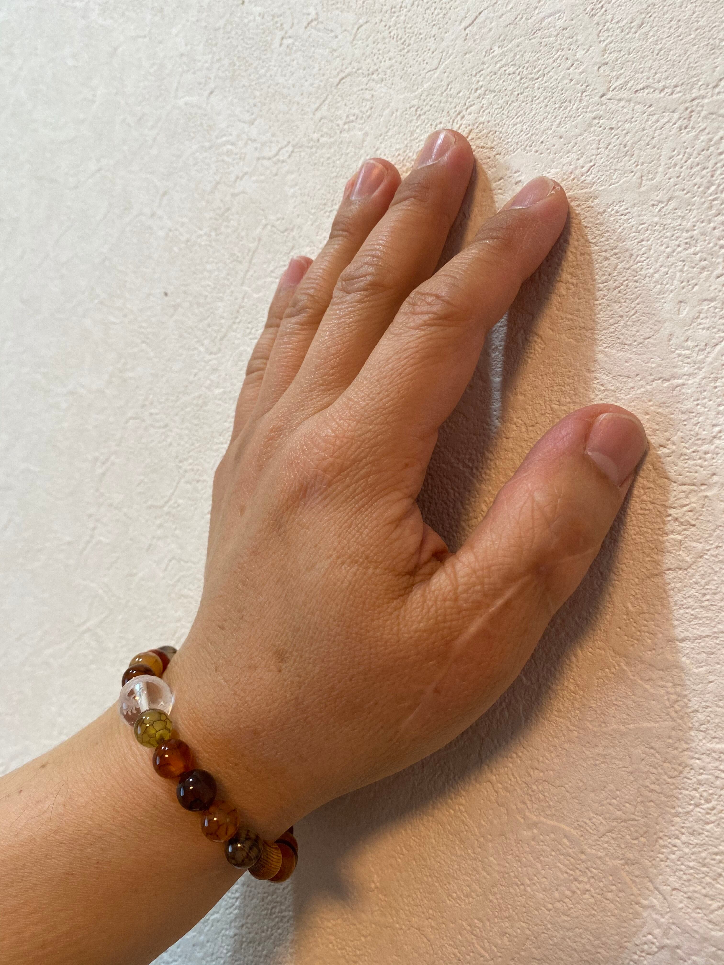 水晶龍彫刻12㎜、屋久杉ウッドビーズ8㎜2個入り、ドラゴンアゲート8㎜ベースブレスレット