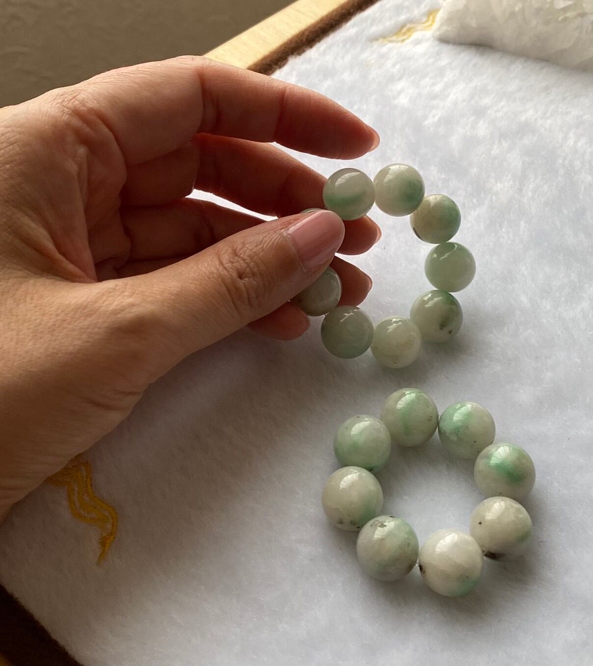 左側のおまもり⭐︎エメラルインクォーツ⭐︎11ミリラウンドビーズ