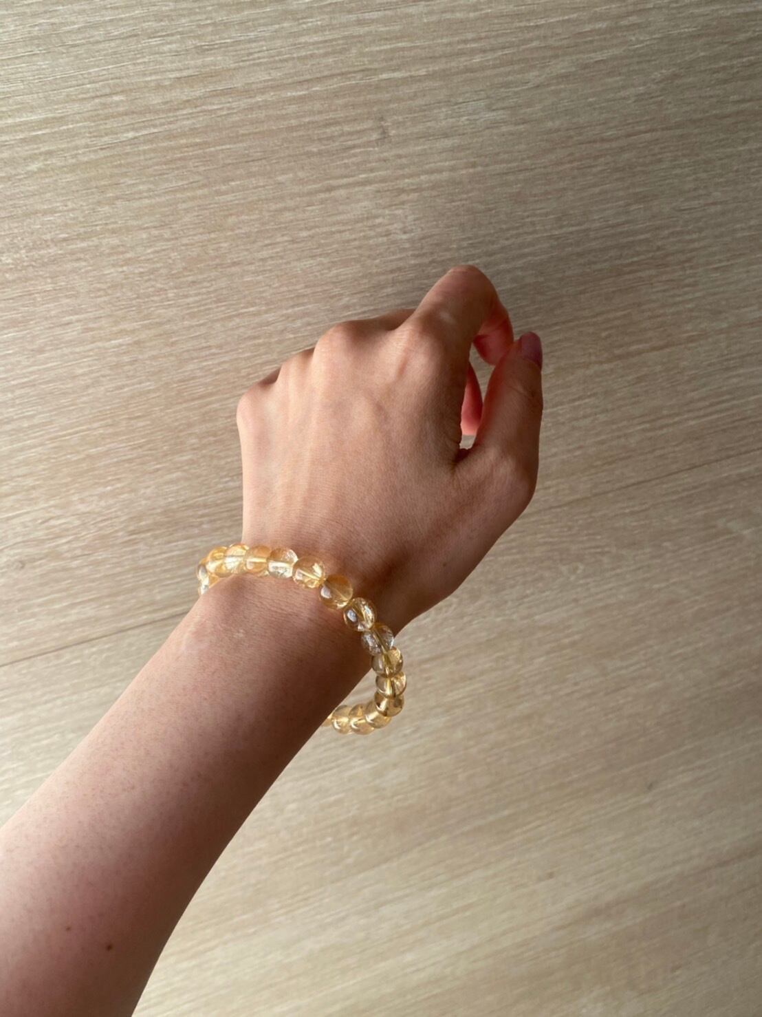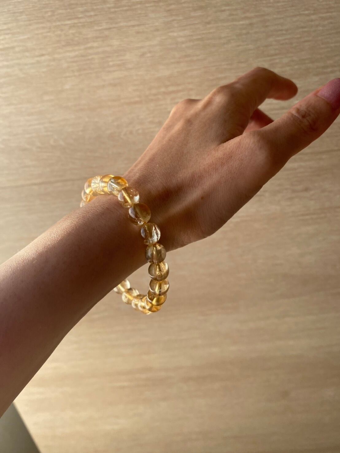 レインボークラックシトリン(8.5ミリビーズブレスレット) モデルの手首サイズ14.6cm