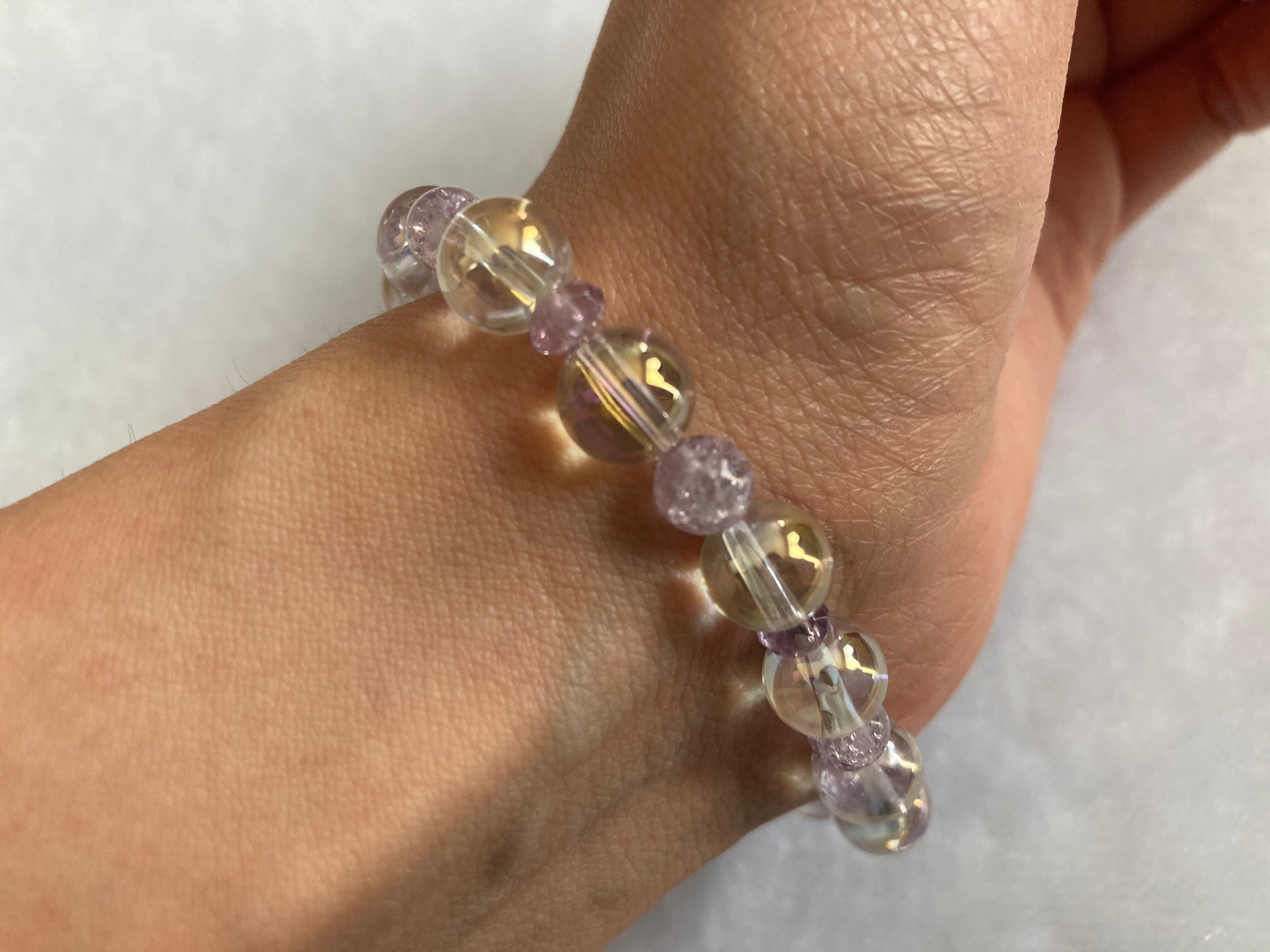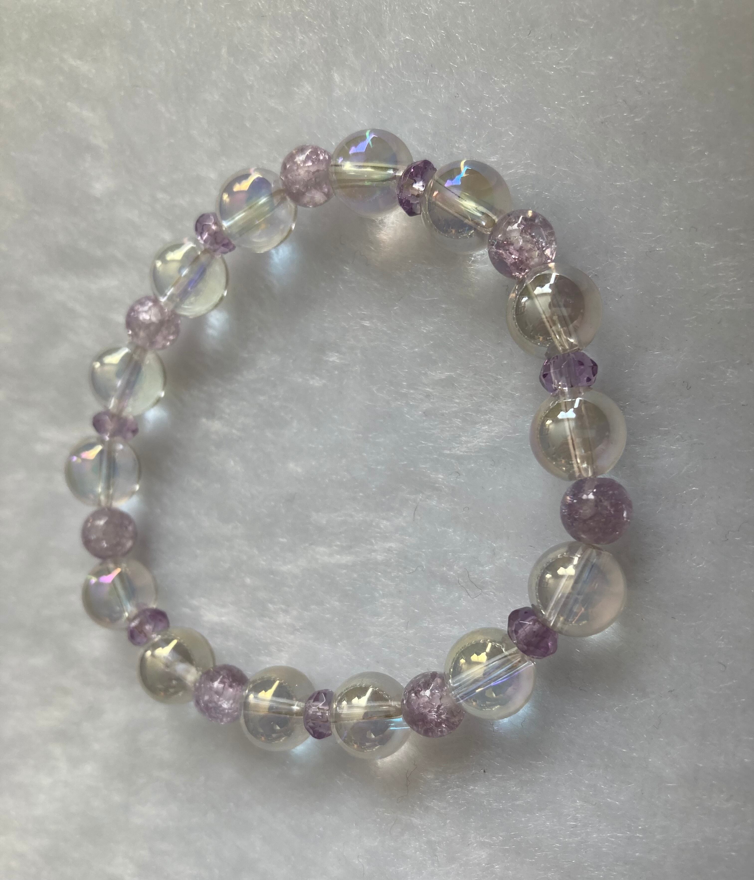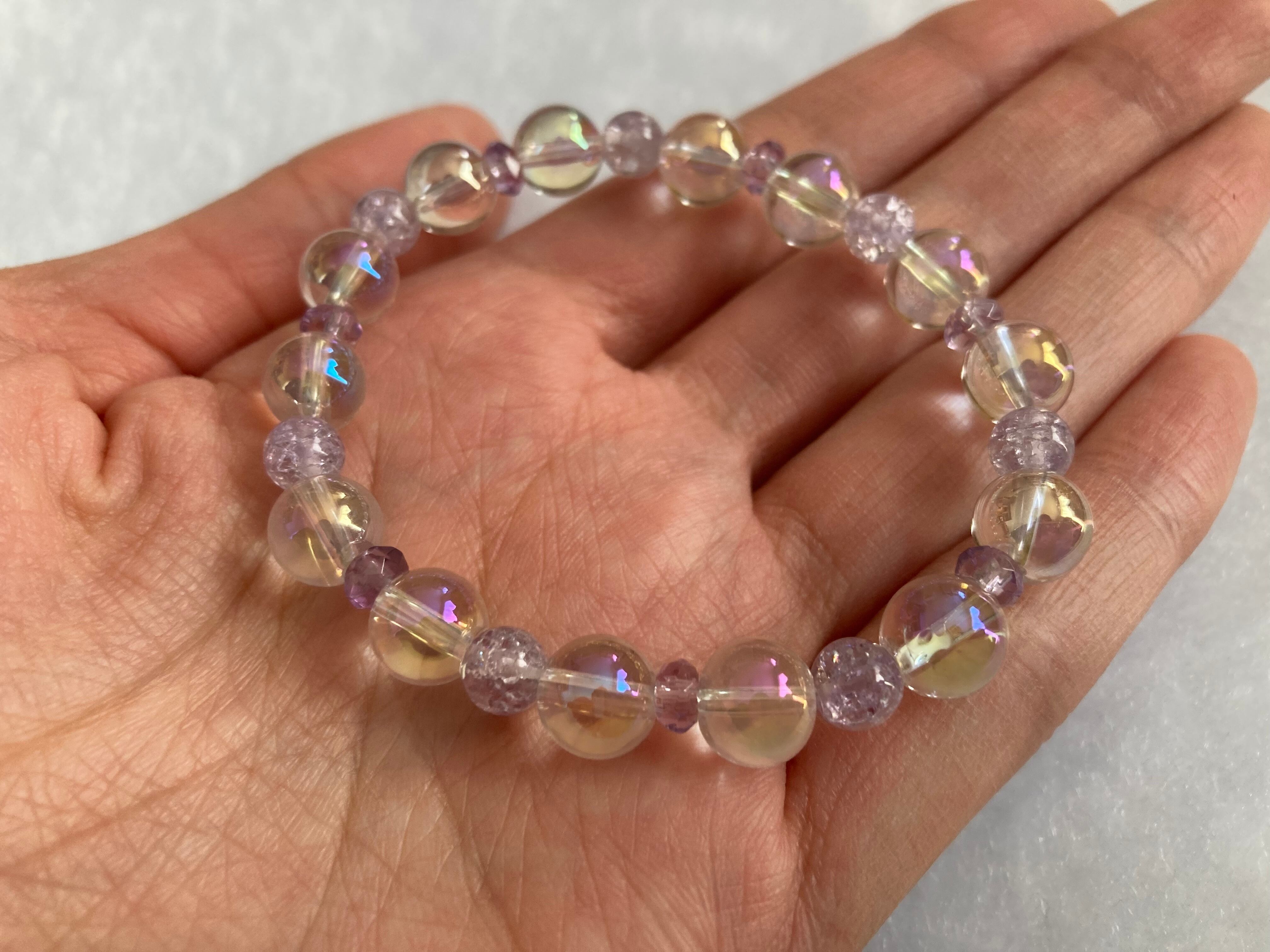 オーロラ水晶8ミリ(14玉) クラックアメシスト6ミリ(7玉) ラベンダーアメシストボタンビーズ(7コ) ブレスレット