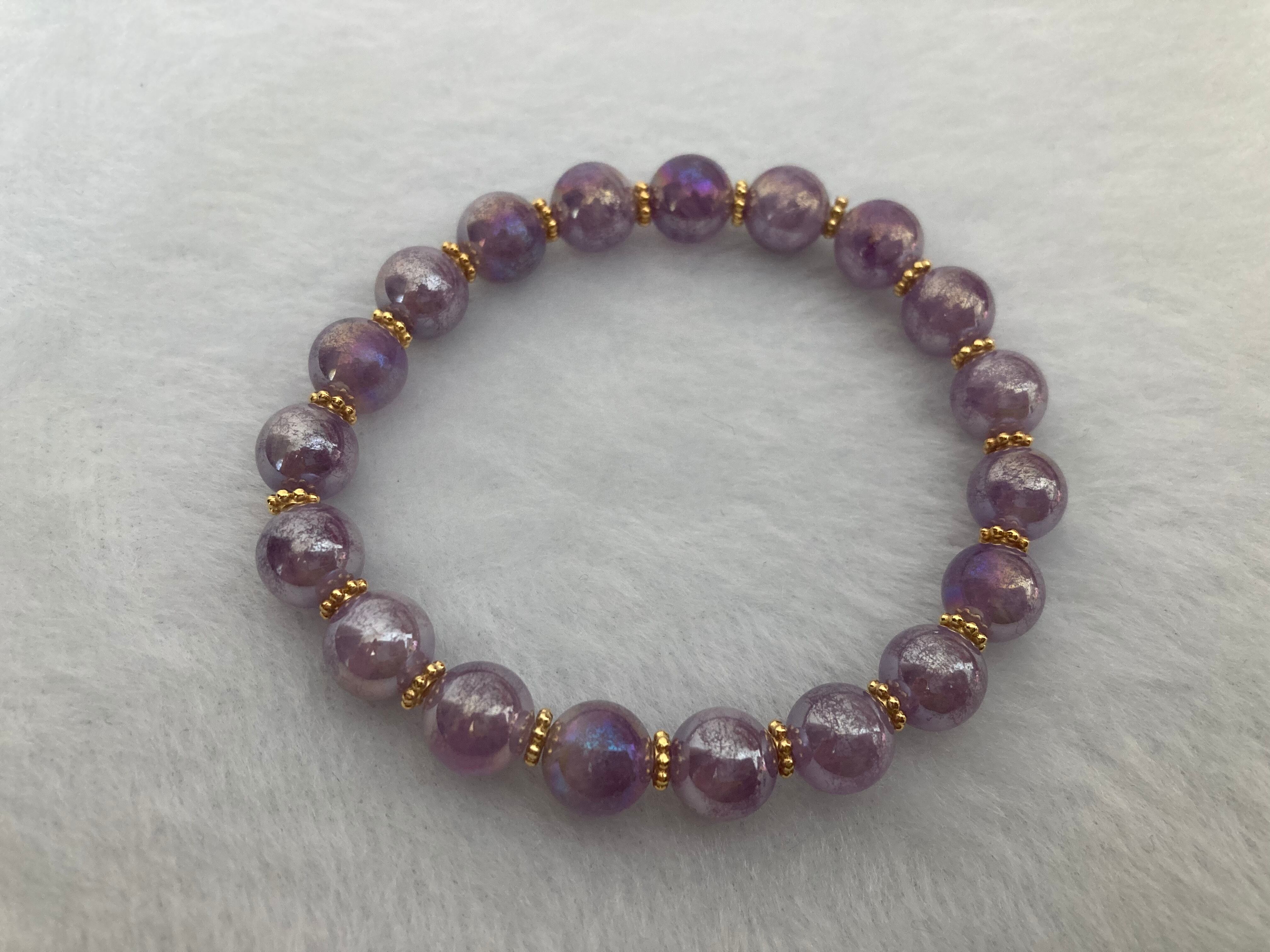 ラベンダーオーラアメシスト デイジーパーツゴールドカラー使用 8ミリ 19玉