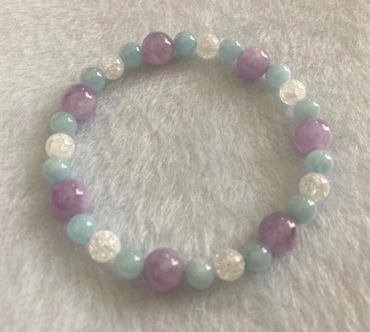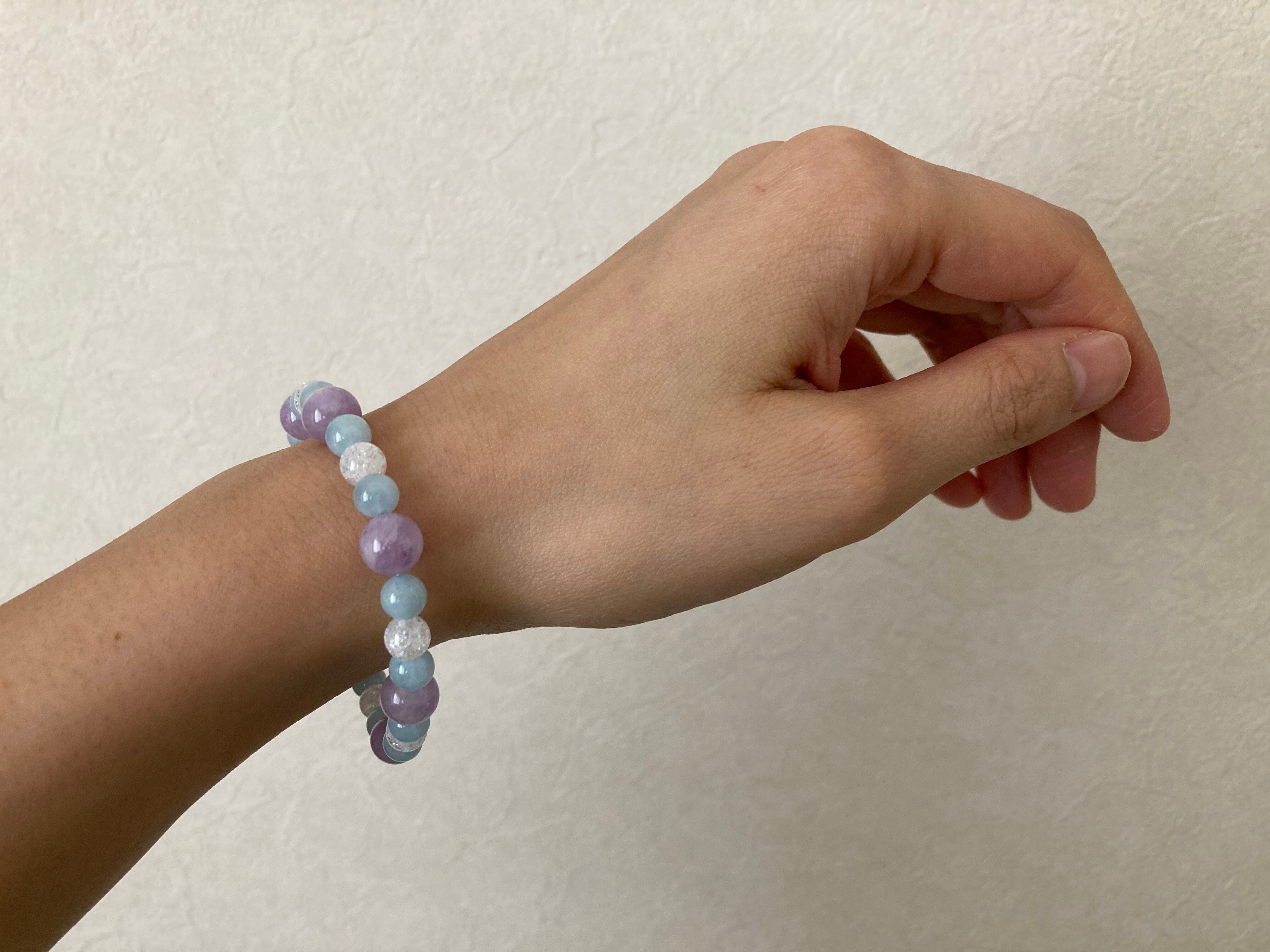 アクアマリン(ミルキー)6ミリ ラベンダーアメシスト8ミリ クラッククォーツ6ミリ ブレスレット