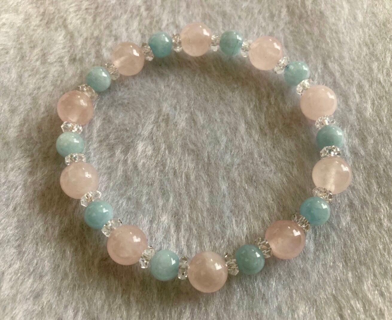 アクアマリン(ミルキー)6ミリ ローズクォーツ8ミリ 水晶ボタンビーズ