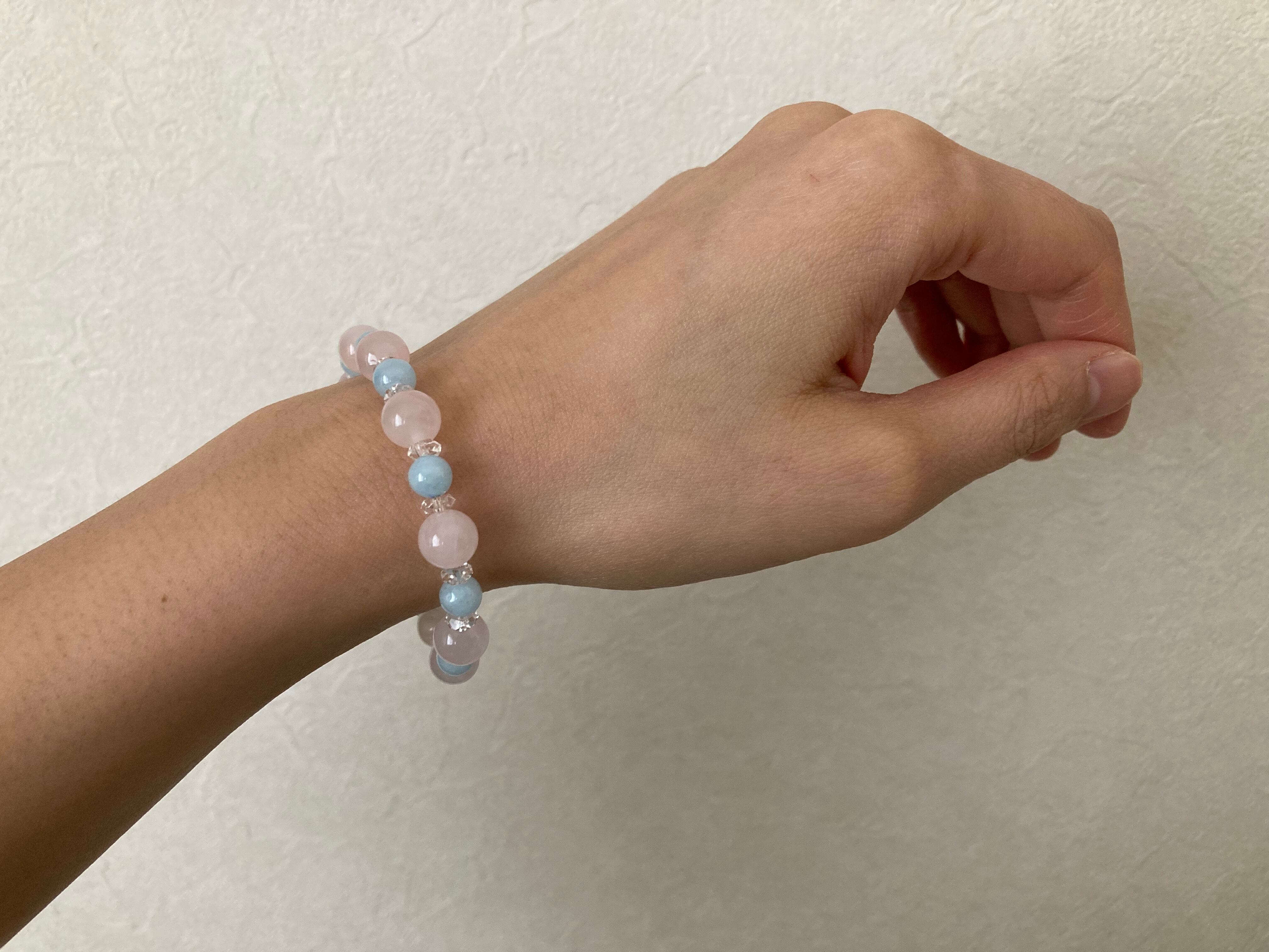 一足早く、、春色のブレスレットをお繋ぎしました。良縁が訪れますように、、