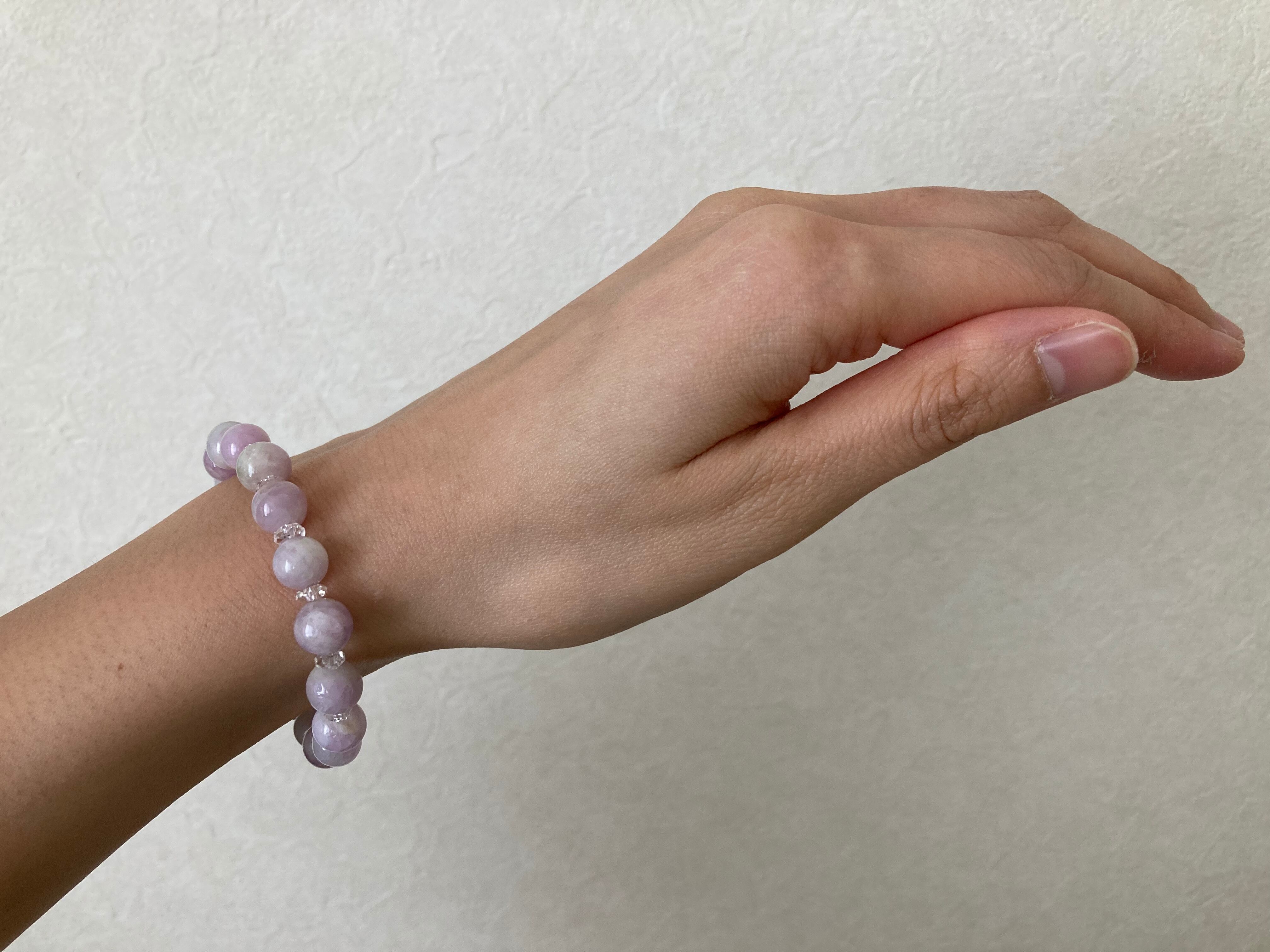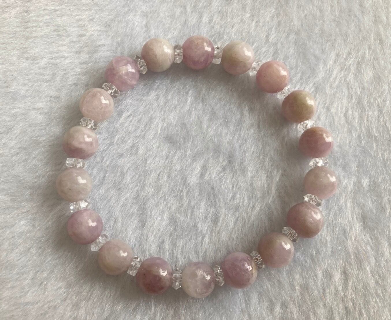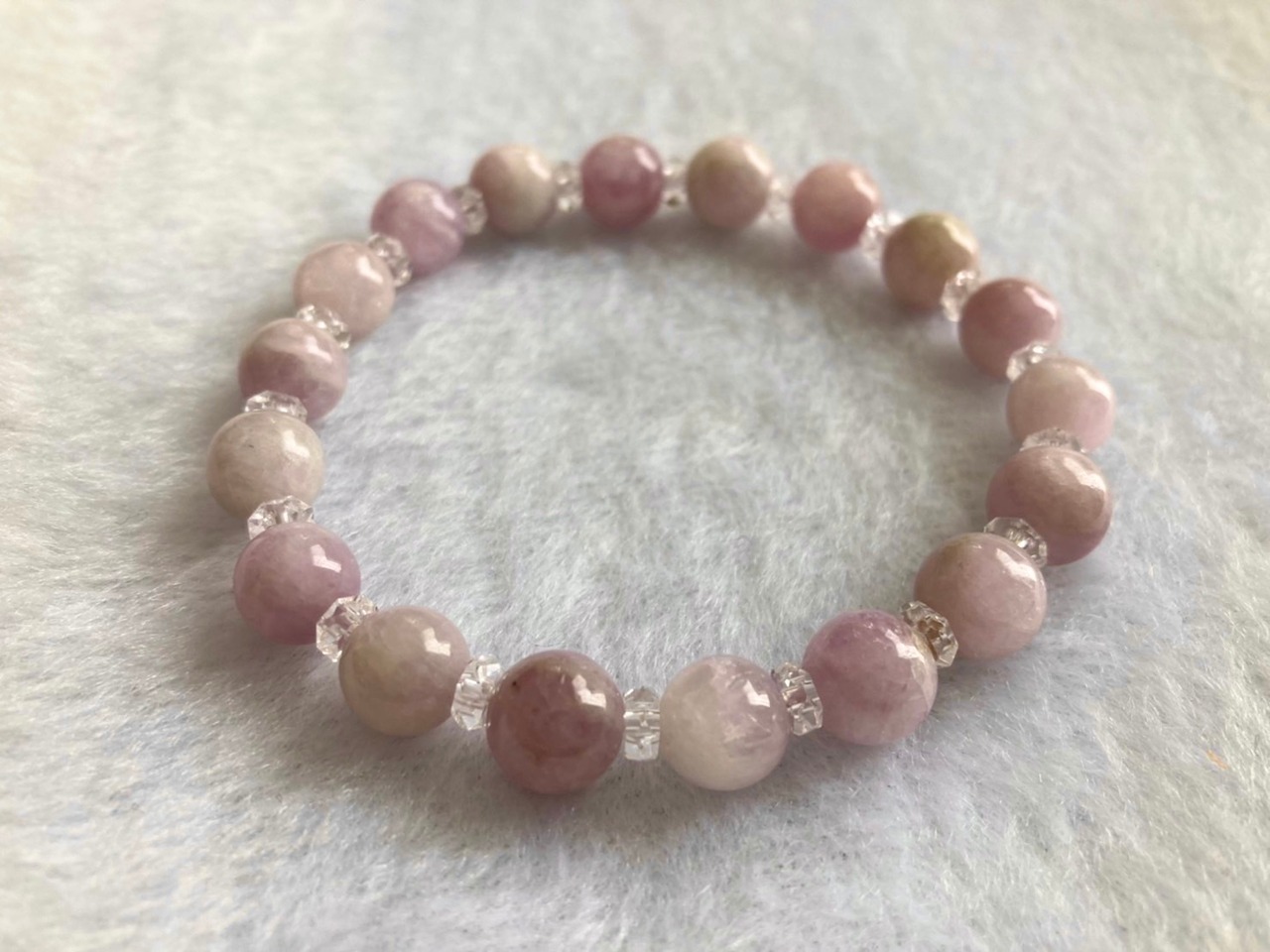ミルキーライトカラークンツァイト8ミリ&水晶ボタンカットビーズブレスレット