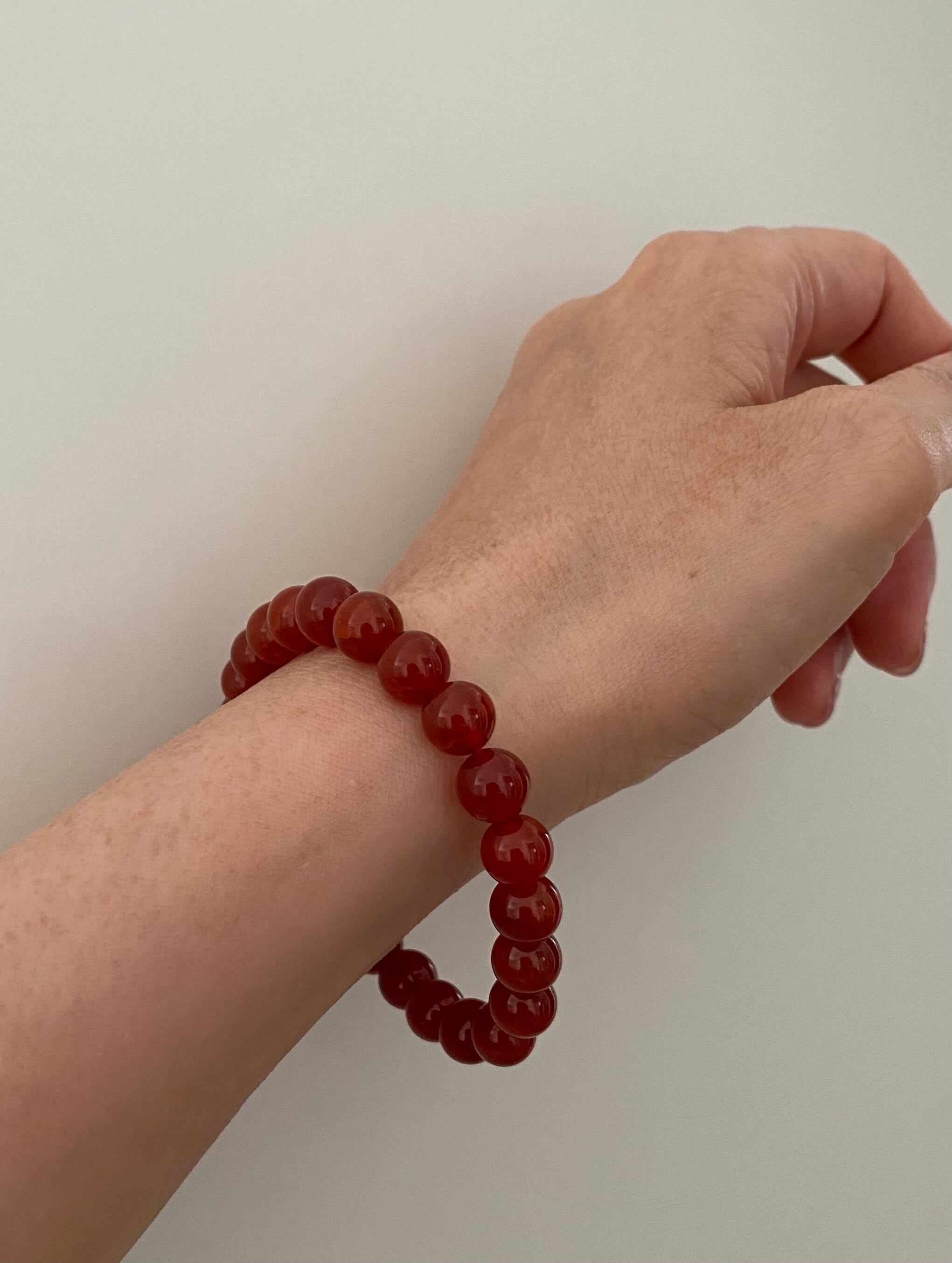 目が覚めるようなレッドカラーのドラゴンアゲートのブレスレットが入荷しました。
