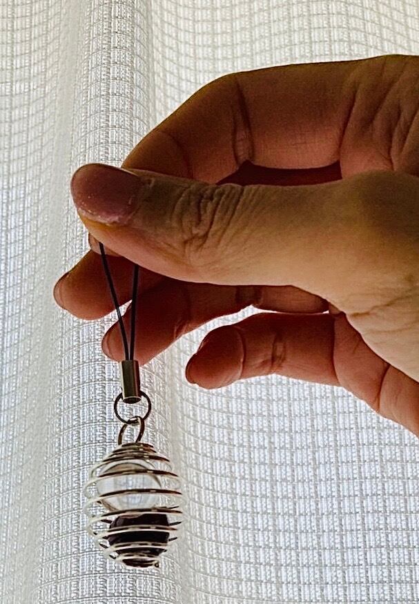 ワイヤーコイルストラップ(ルビータンブル 水晶12ミリ丸玉)