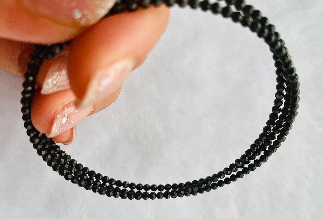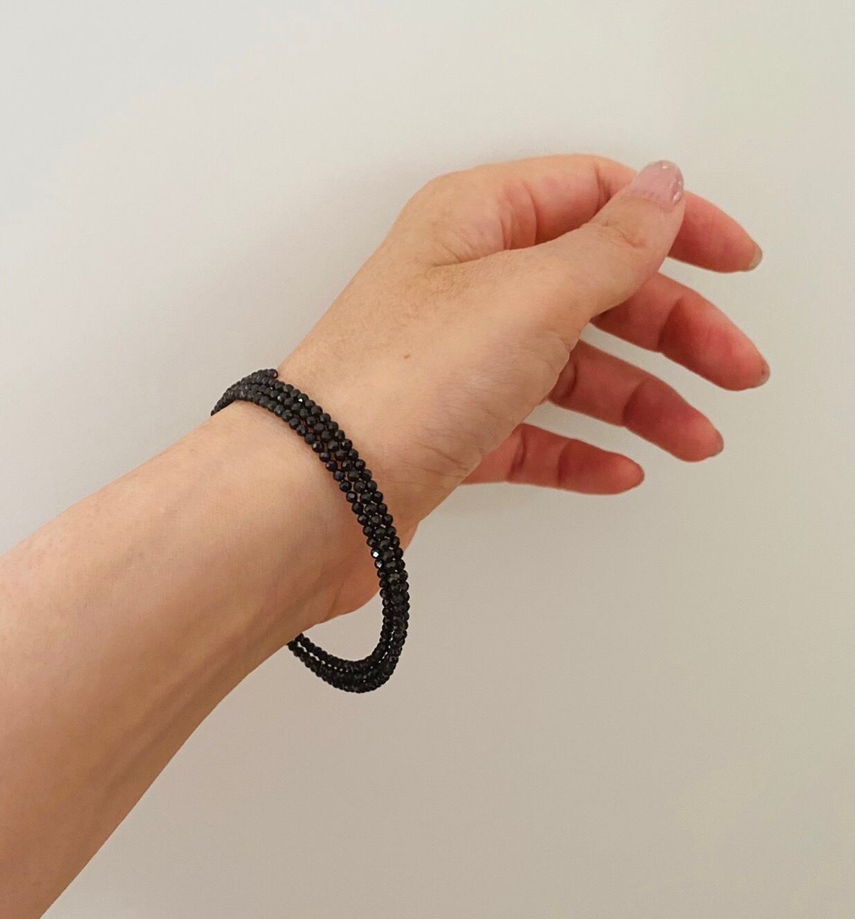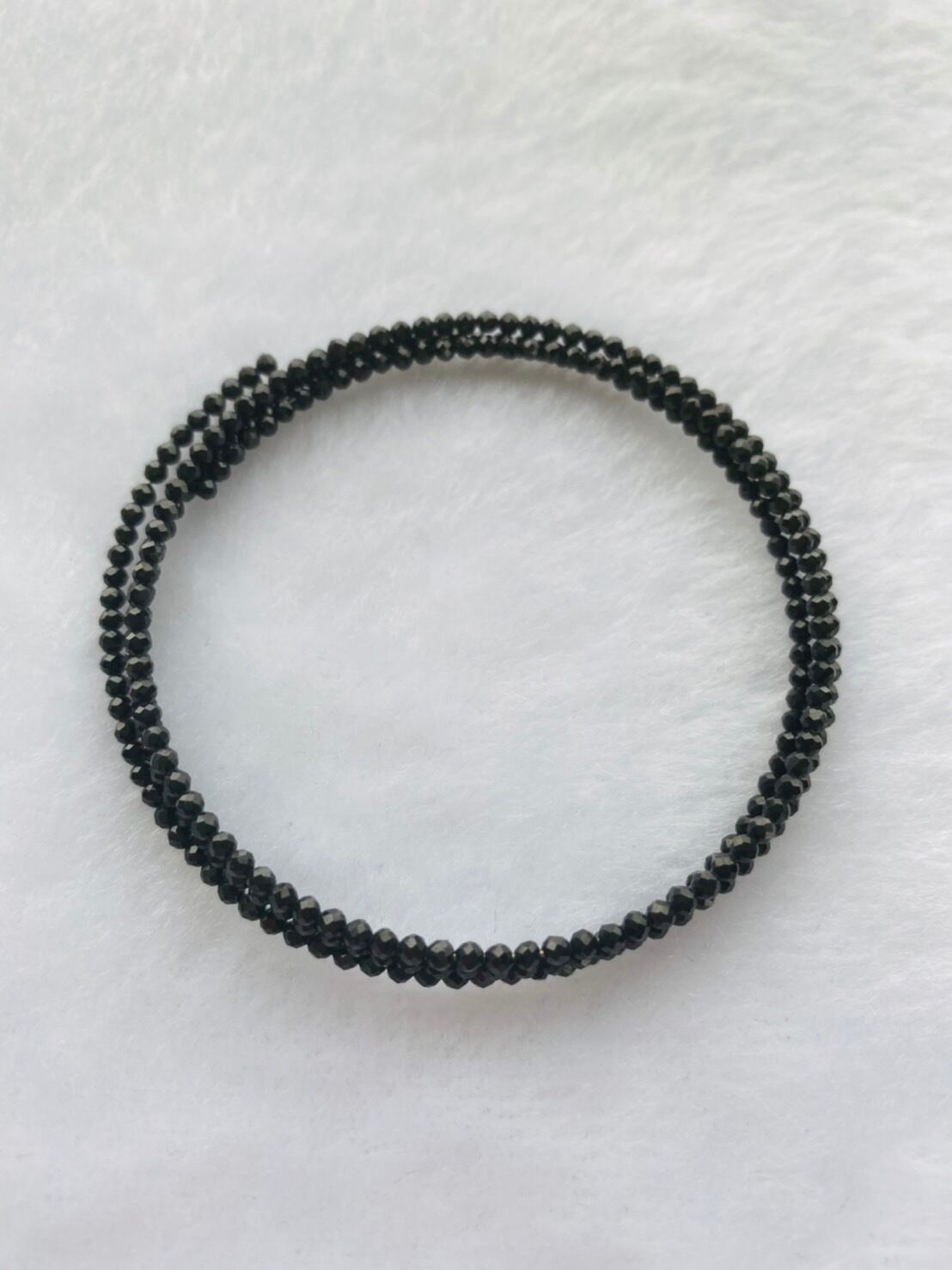 ブラックスピネル(2ミリカットビーズ)三連キラキラコイルブレスレット
