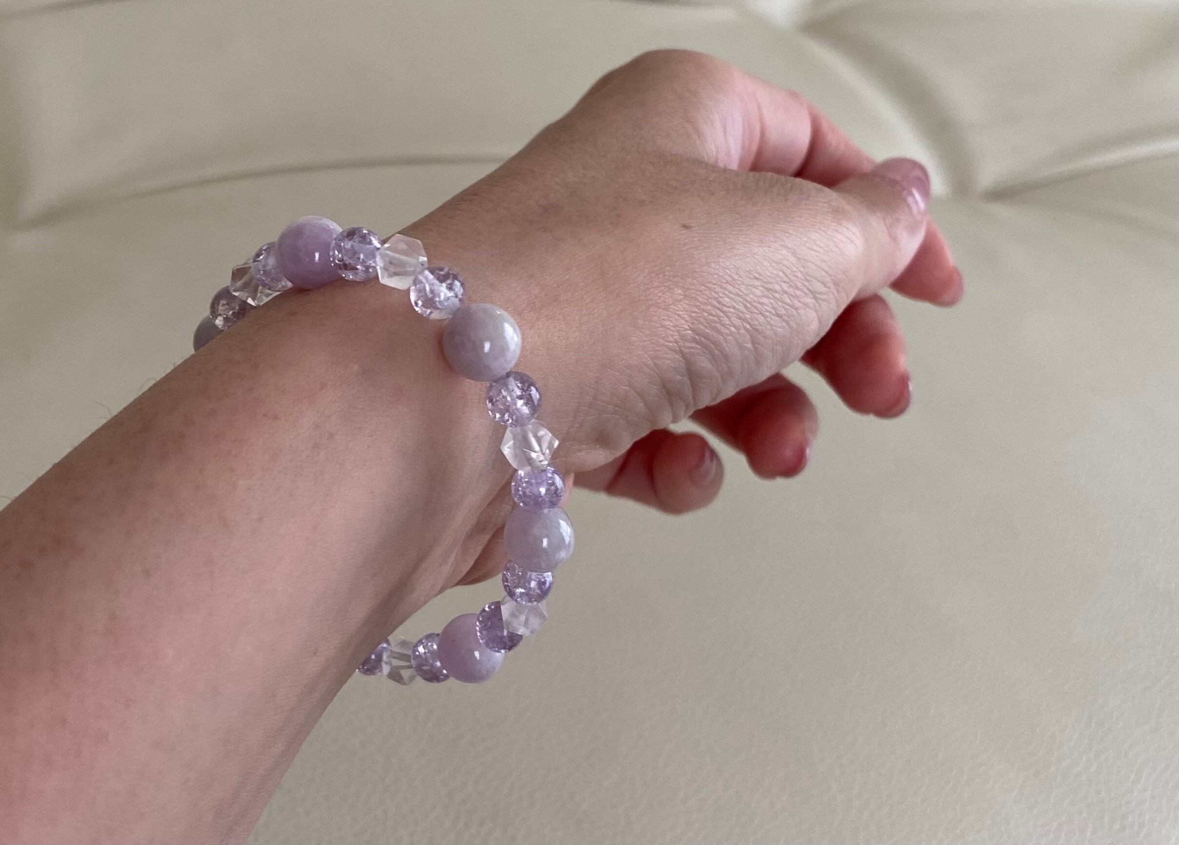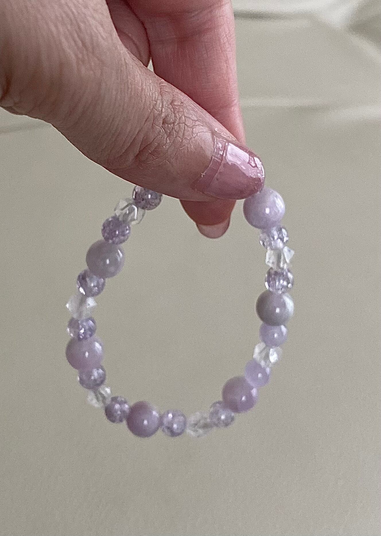 クンツァイト8ミリビーズ クラックアメシスト6ミリビーズ クリアローズカットビーズブレスレット