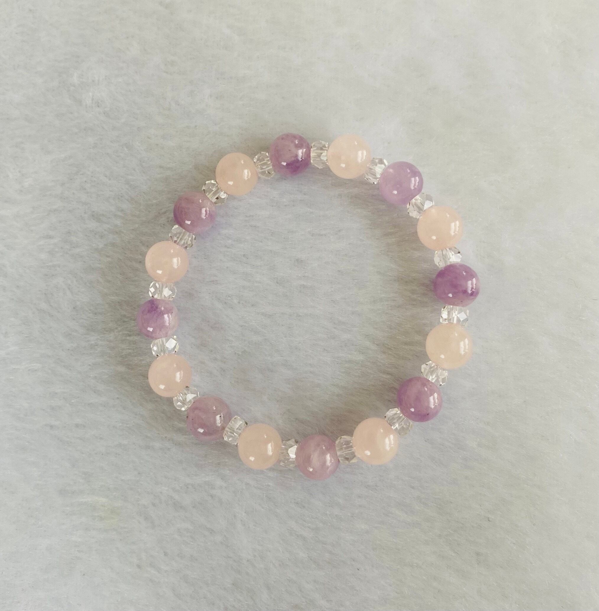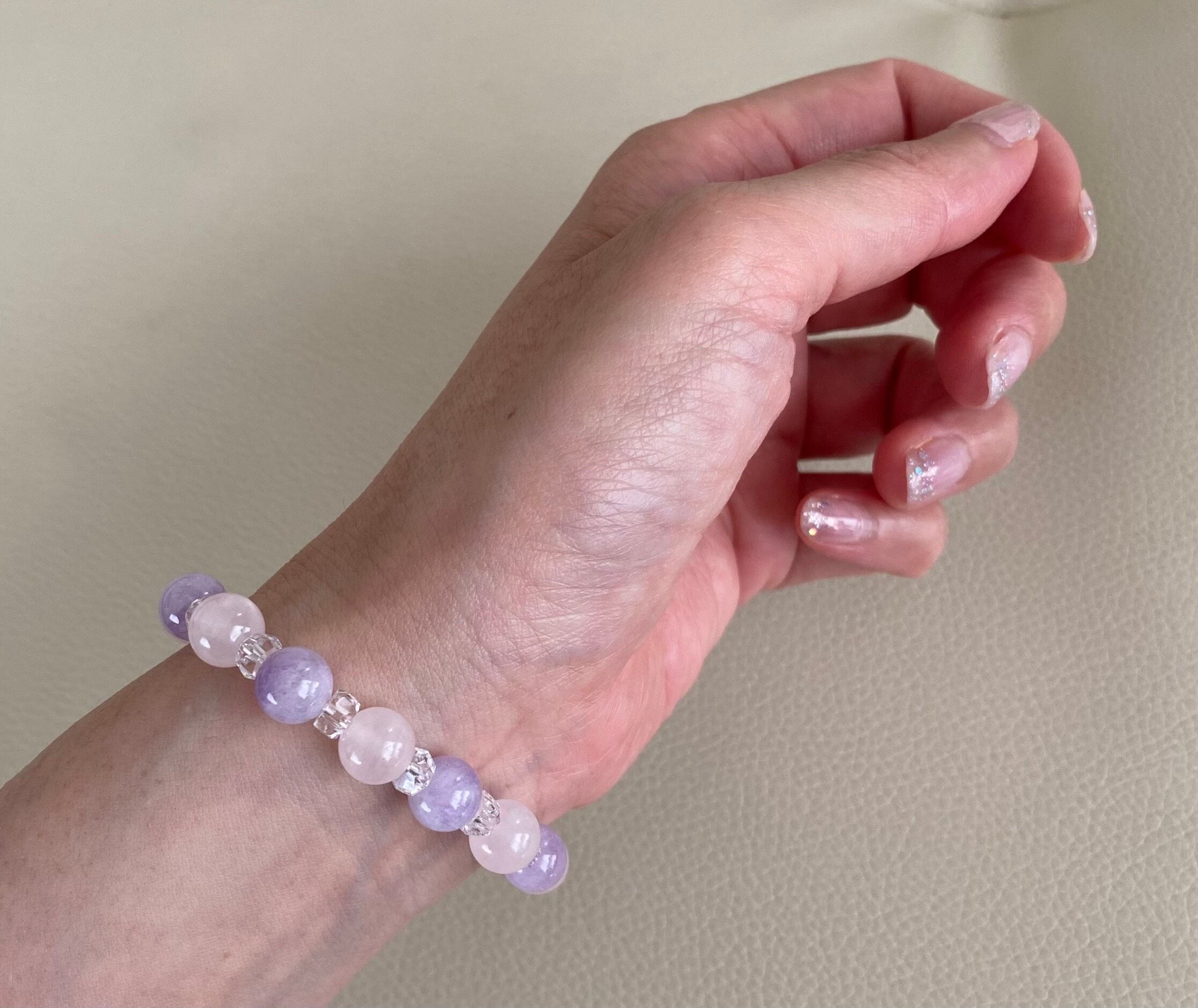 ローズクォーツ8ミリ ラベンダーアメシスト8ミリ 水晶ボタンカットビーズブレスレット