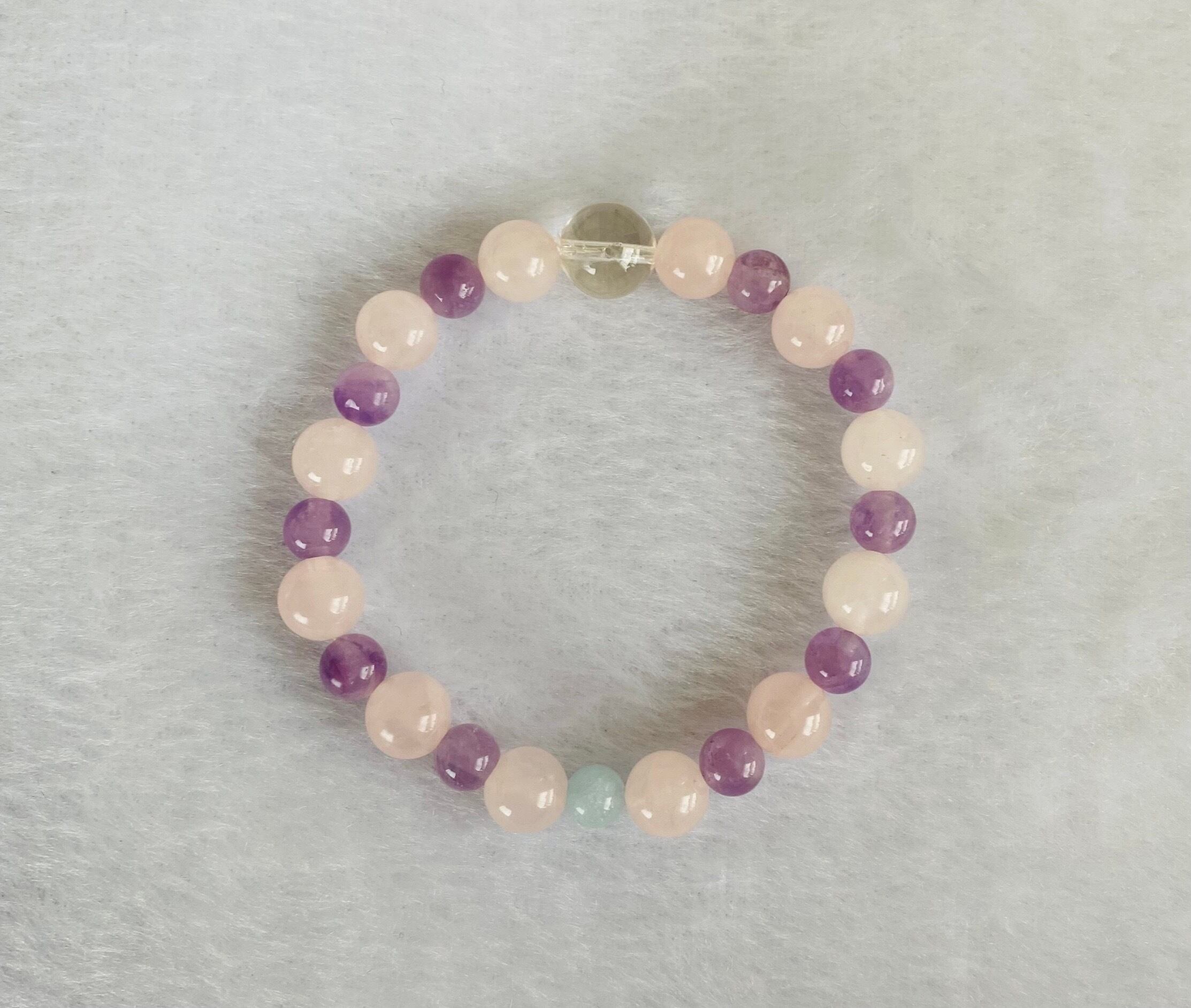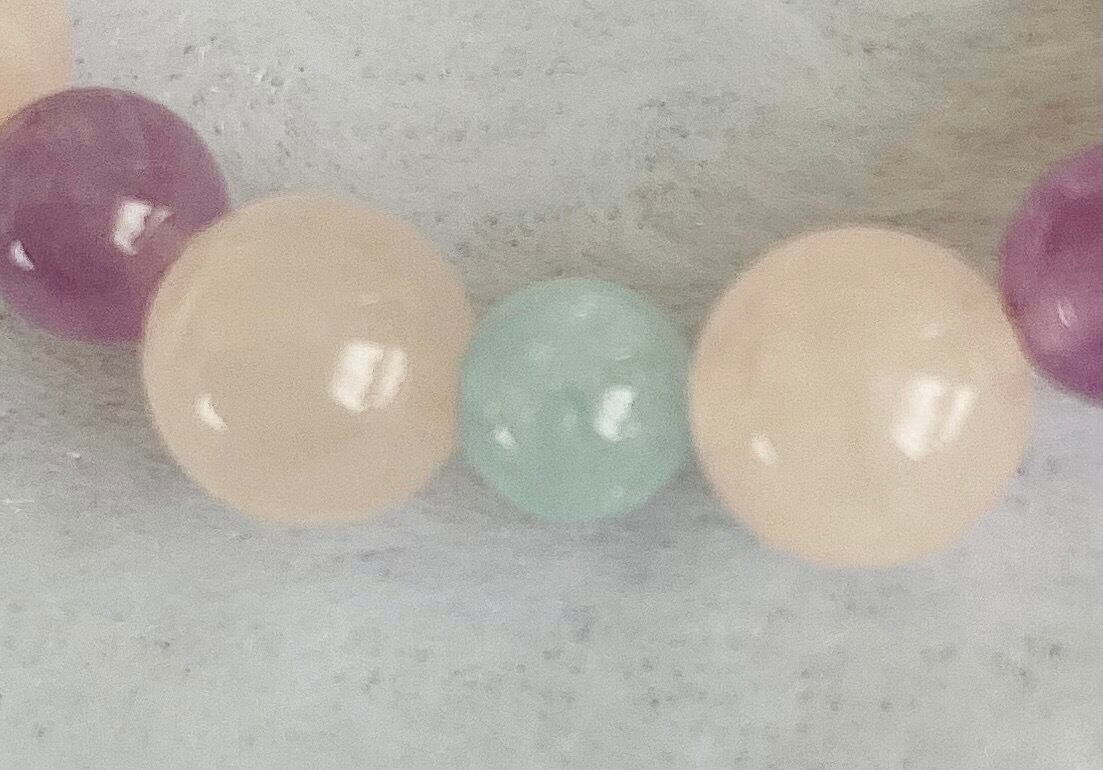 ローズクォーツ8ミリ ラベンダーアメシスト6ミリ アクアマリン6ミリ 水晶10ミリブレスレット
