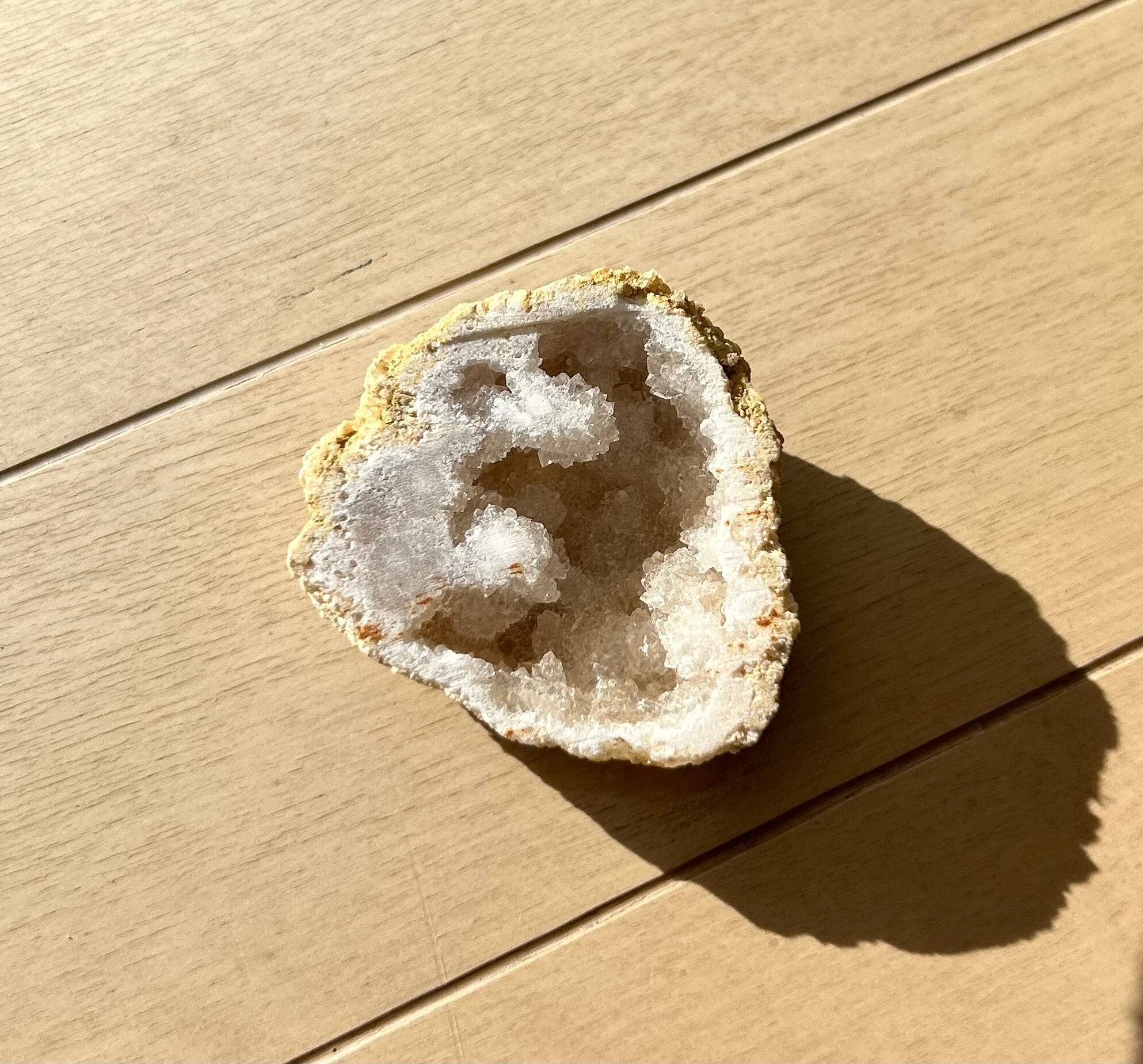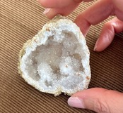 ジオード(別名 トレジャーメノウ)は、石の内側に水晶などの結晶が晶出し、鍾乳洞のような空洞が中心に残っているものがそれです。