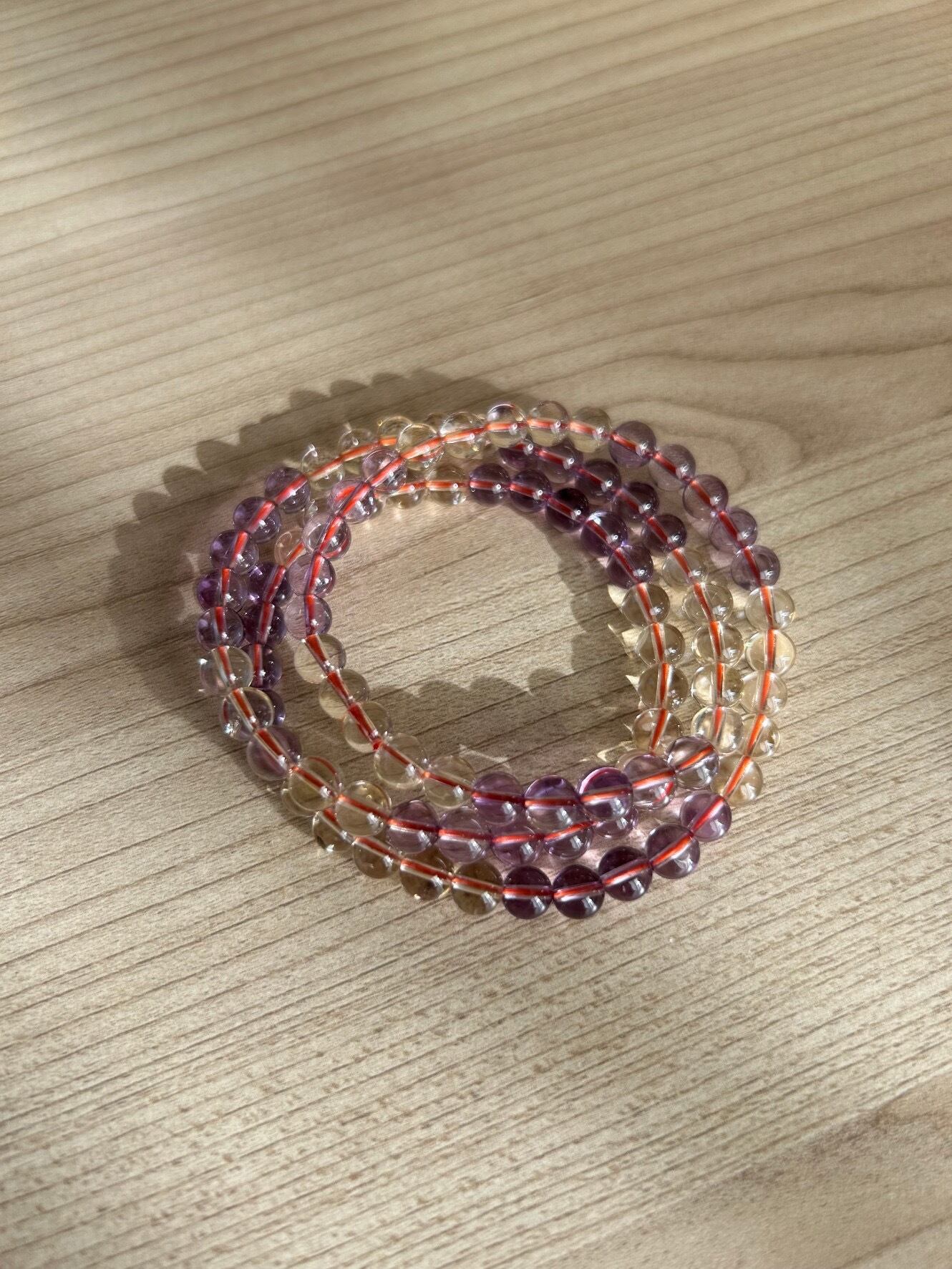 アメシストandシトリン6ミリビーズ3連ブレスレット