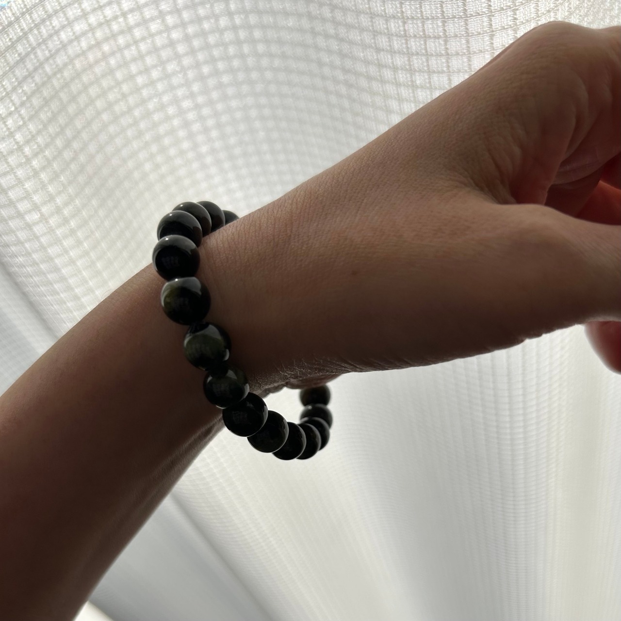 ブラックトルマリンには珍しいバイカラービーズのブレスレットです