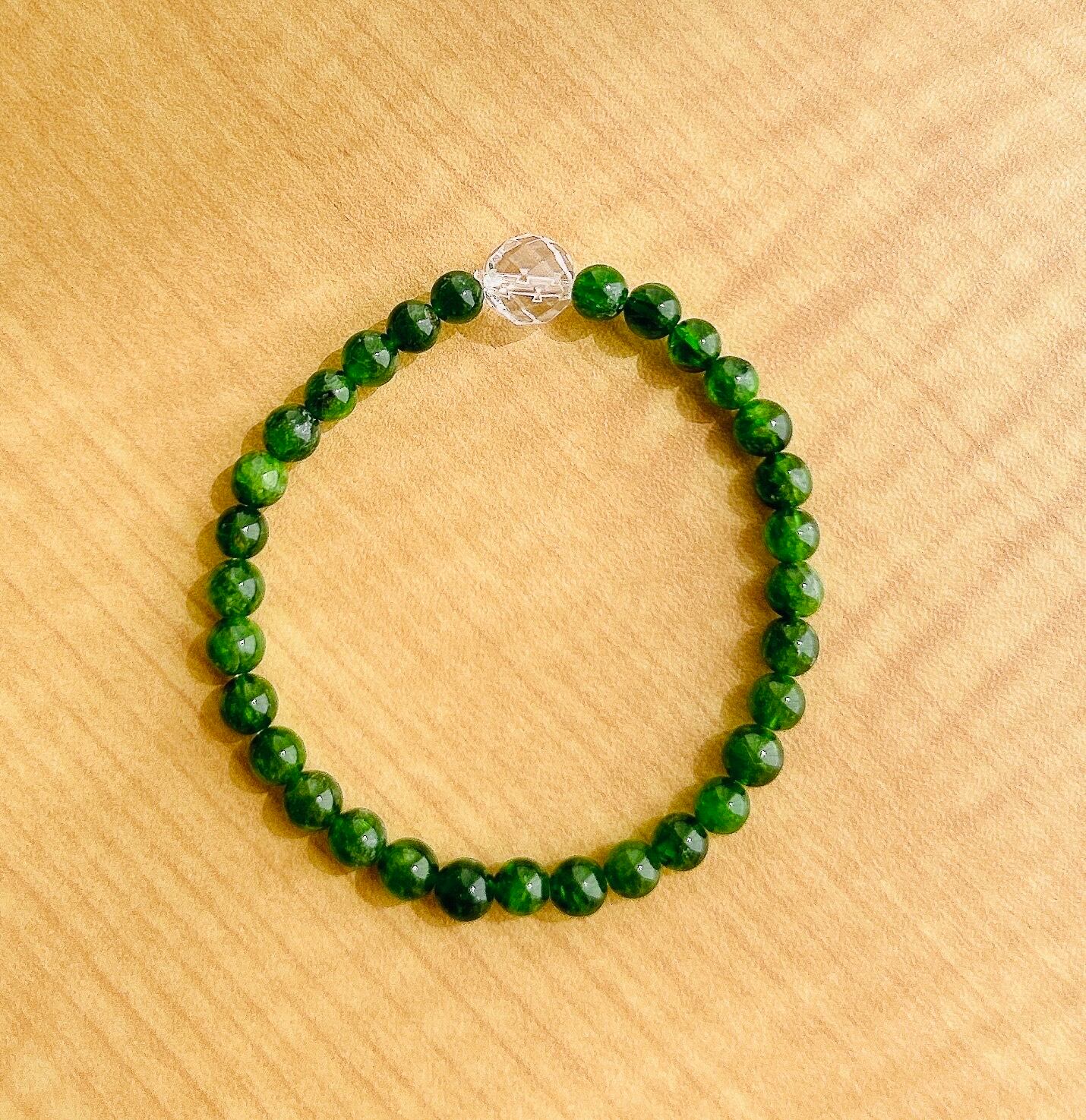 ダイオプサイド 5ミリビーズ 水晶8ミリミラーボールポイントブレスレット