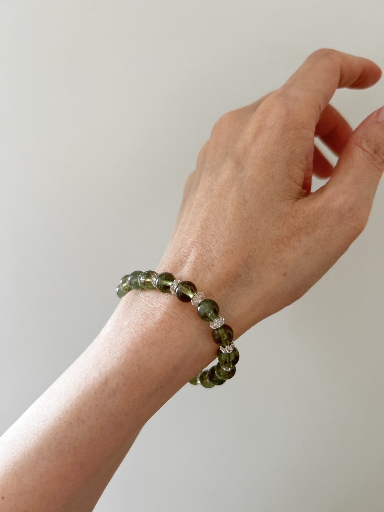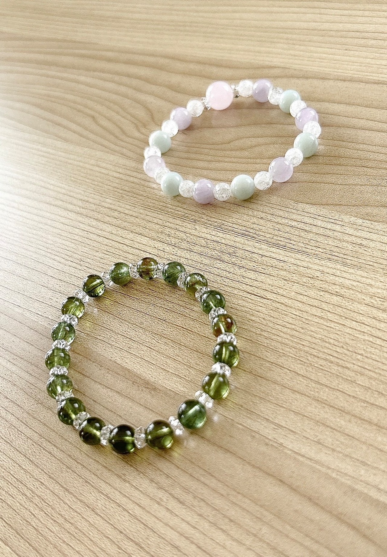 グリーンアパタイト8㍉ビーズ.水晶ボタンビーズ
