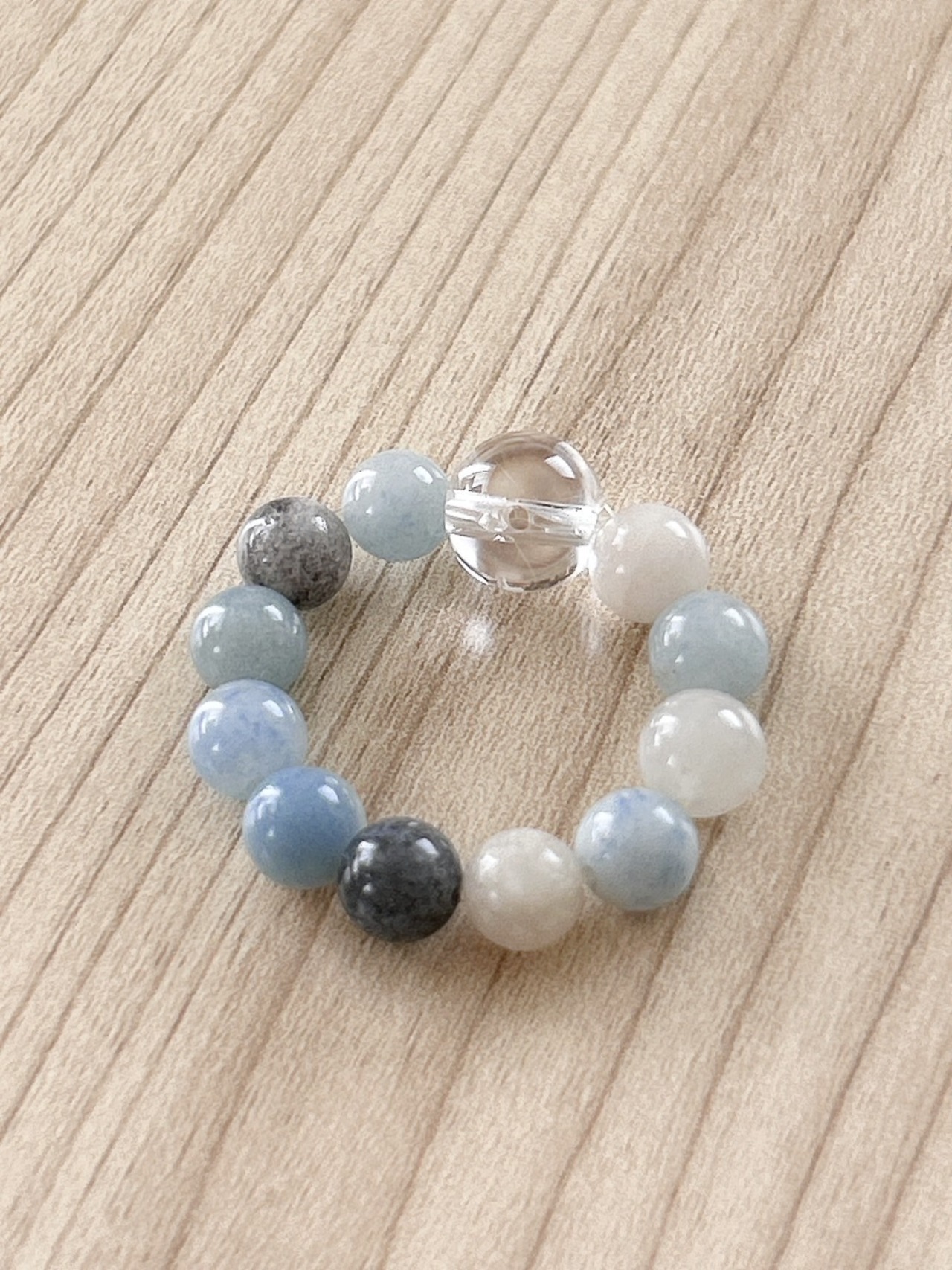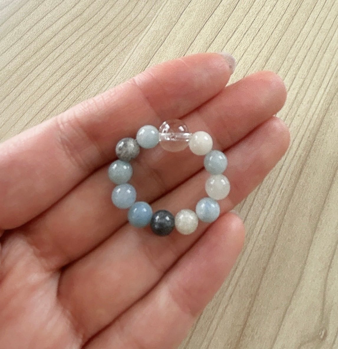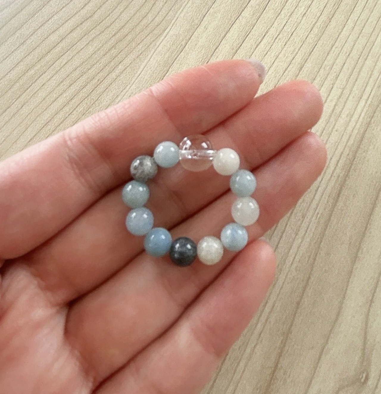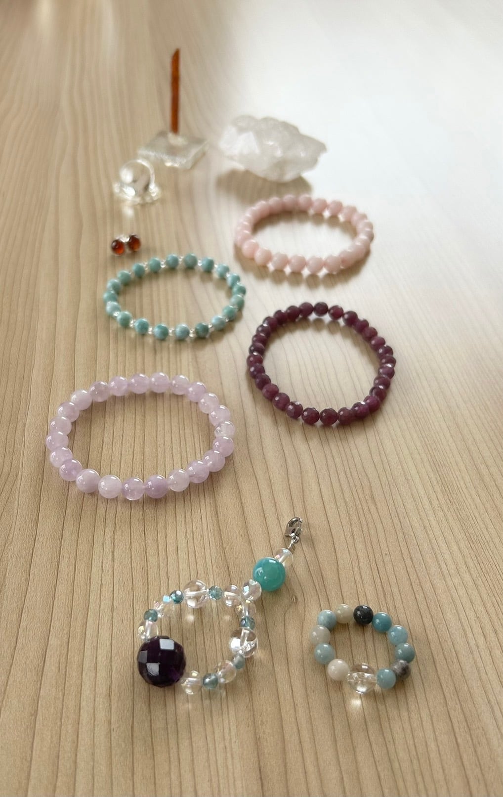 左側のおまもり「トロレアイト(トロール石)5㎜ビーズand水晶6㎜