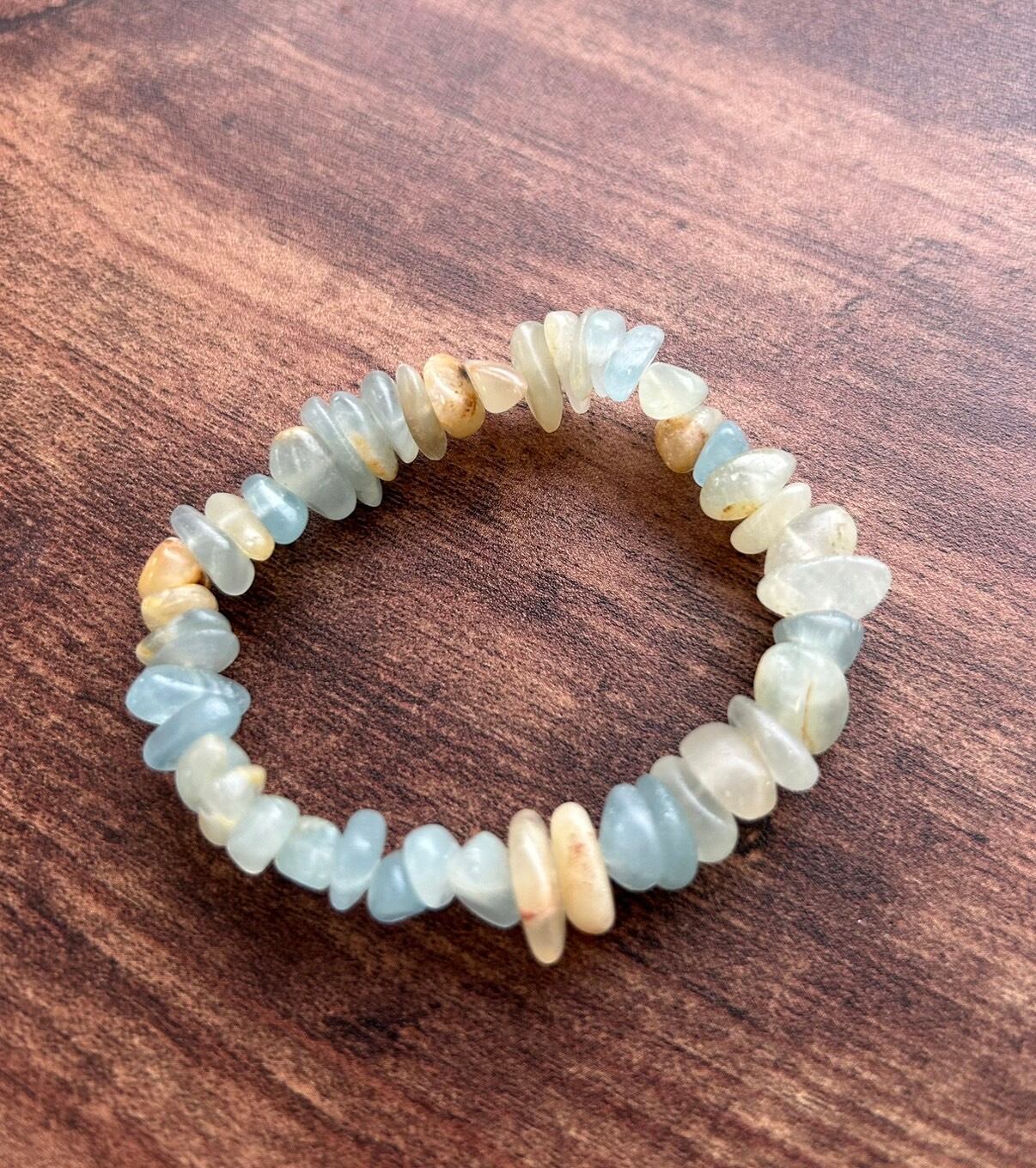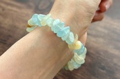 シーグラスのようにも見える、あるそうでない、ちょっと珍しいブルーカルサイトのさざれタイプのブレスレットです