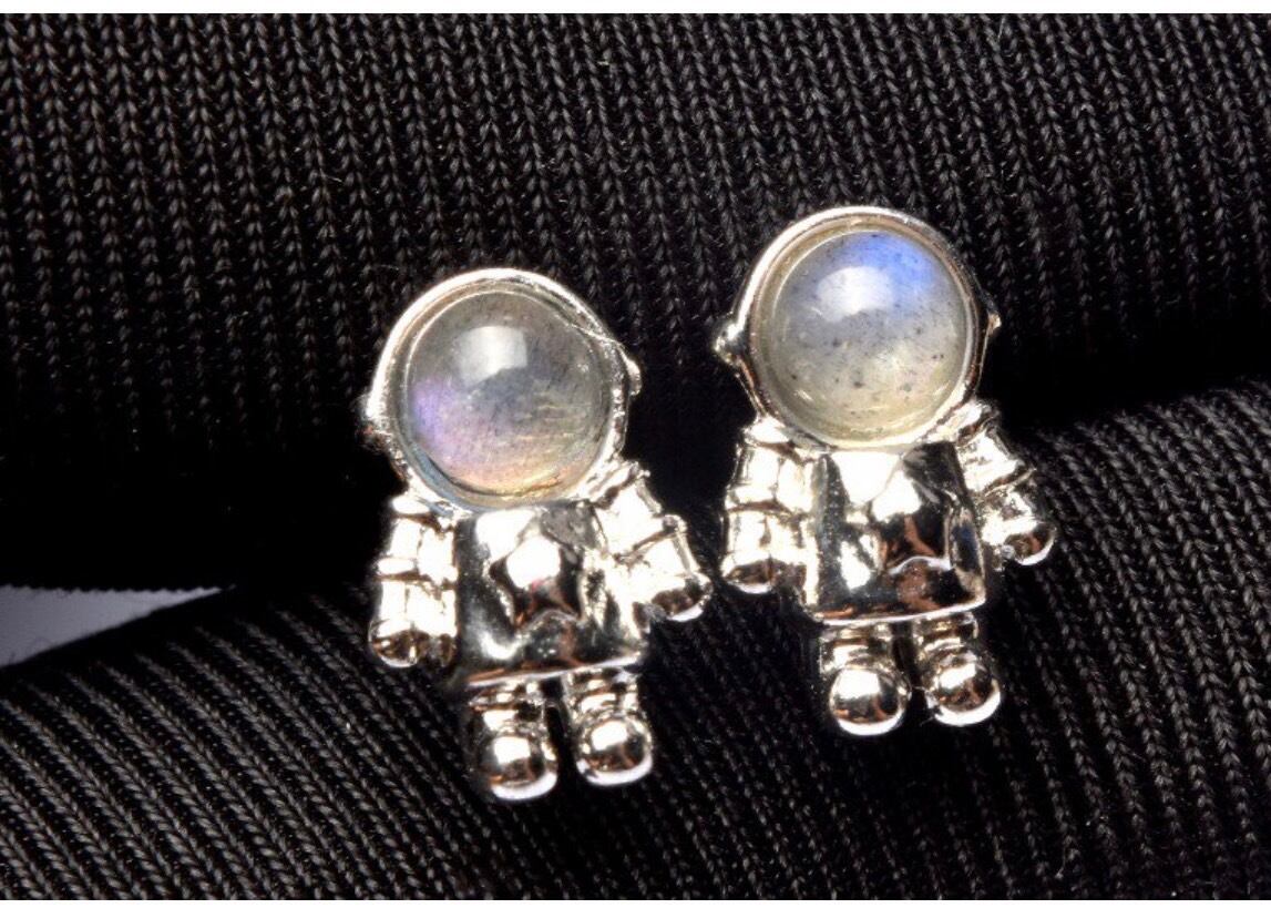 ラブラドライト4㍉宇宙飛行士モチーフピアス
