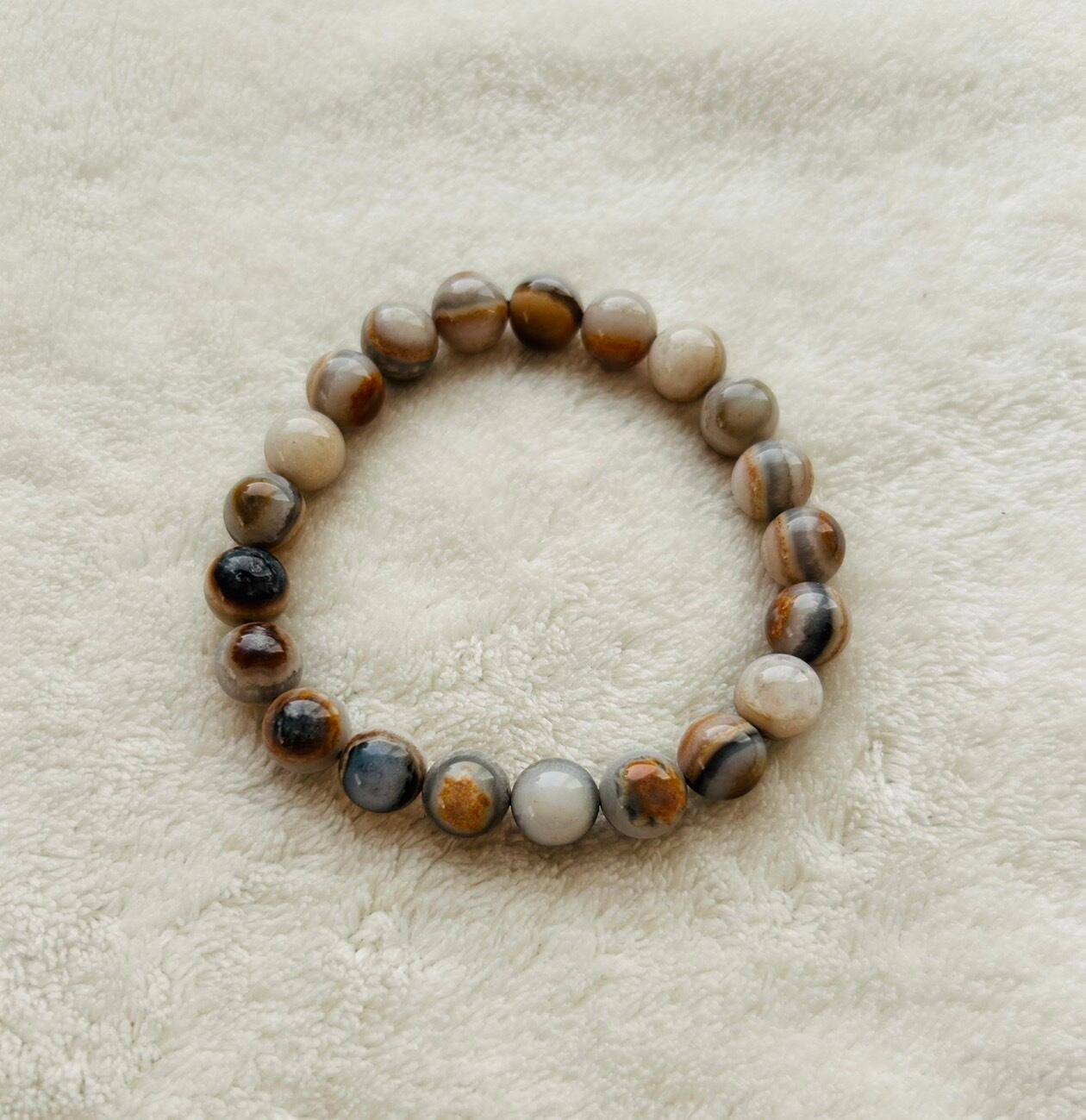 天眼模様アゲート9㎜ブレスレット モデルの手首17cm (どちらかというと男性サイズです)