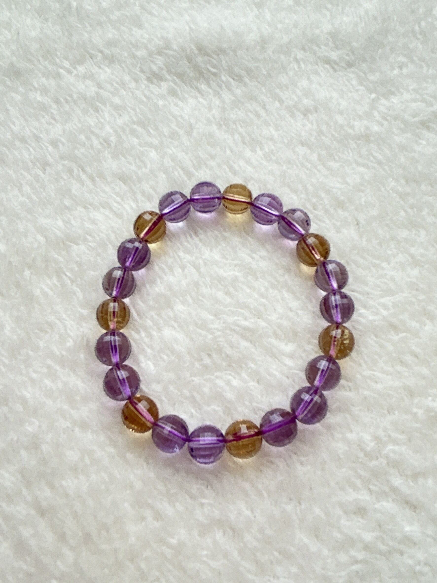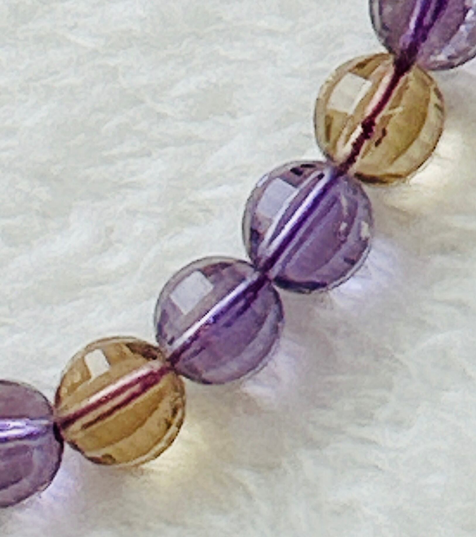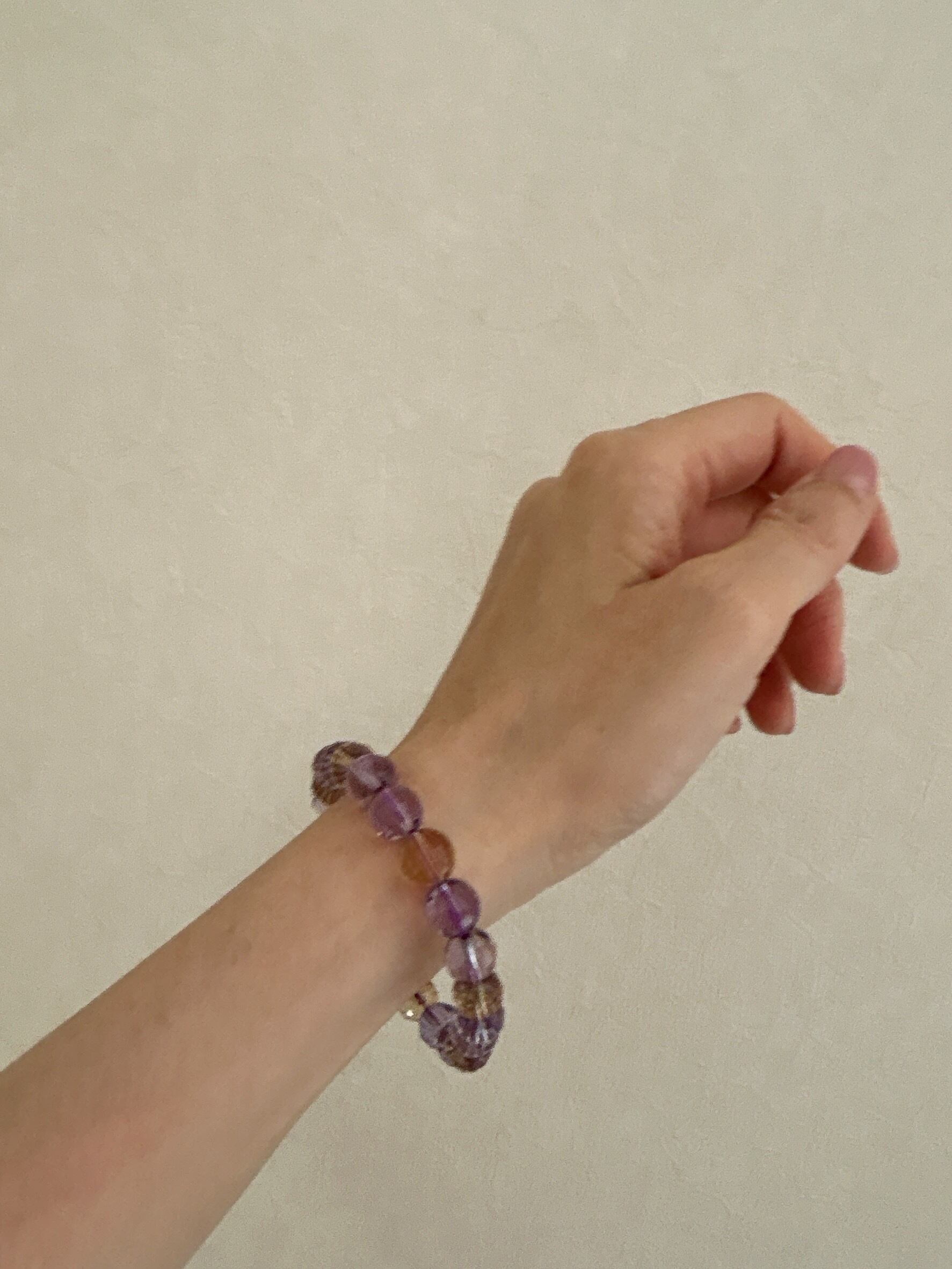 アメシストandシトリンミラーボール8㎜ビーズブレスレット モデルの手首サイズ 14.2cm