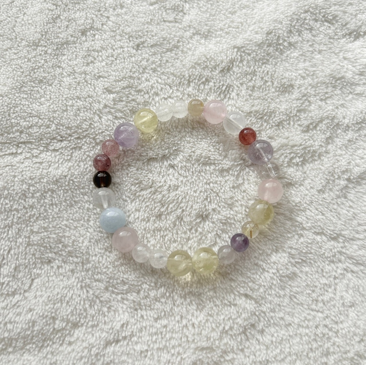 レモンクォーツ、エンジェルラダークォーツ、アクアマリン、ローズクォーツ8㎜
