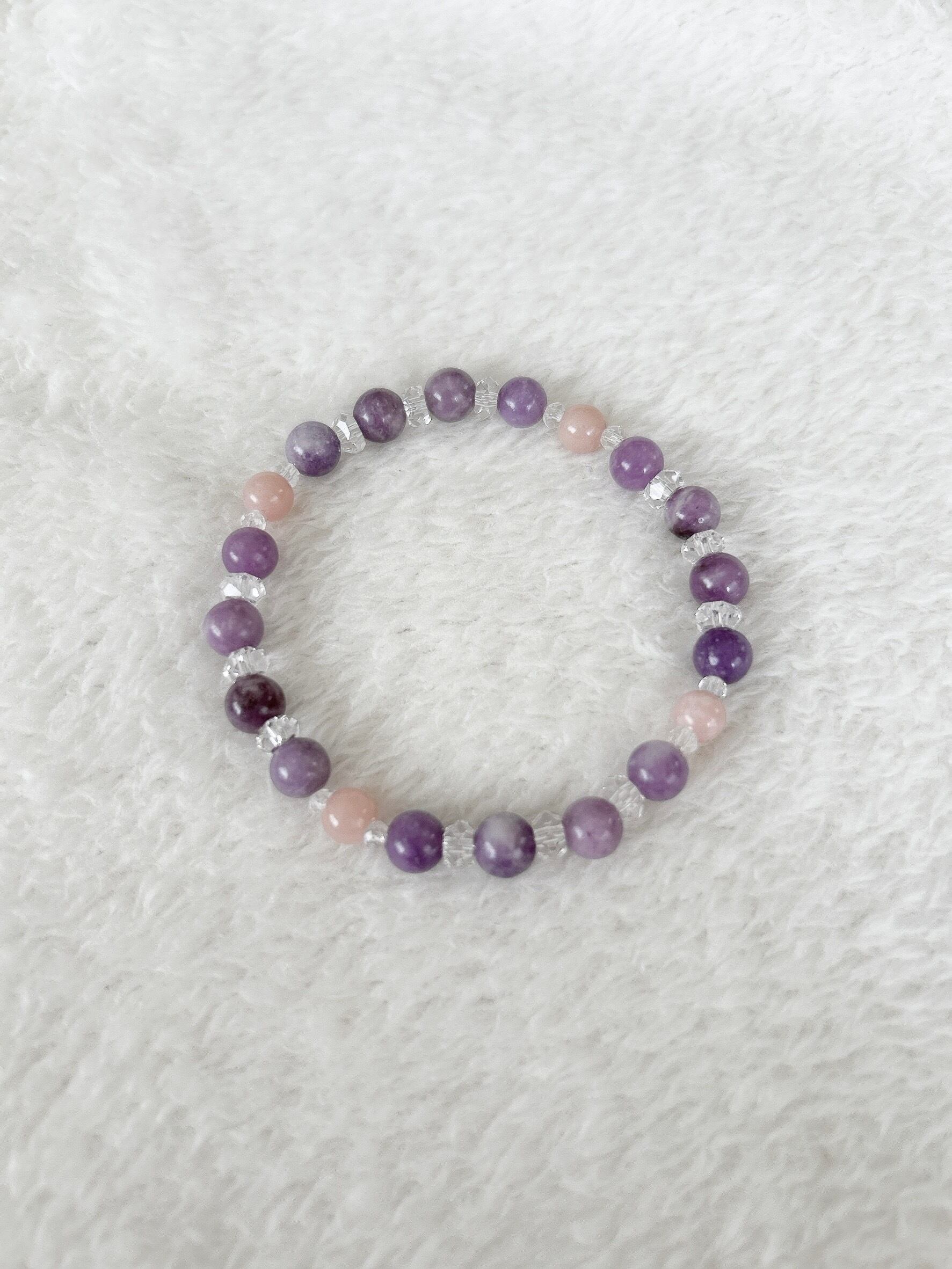 パープルトルマリン6㎜ ピンクオパール5.5㎜ 水晶ボタンカットビーズブレスレット